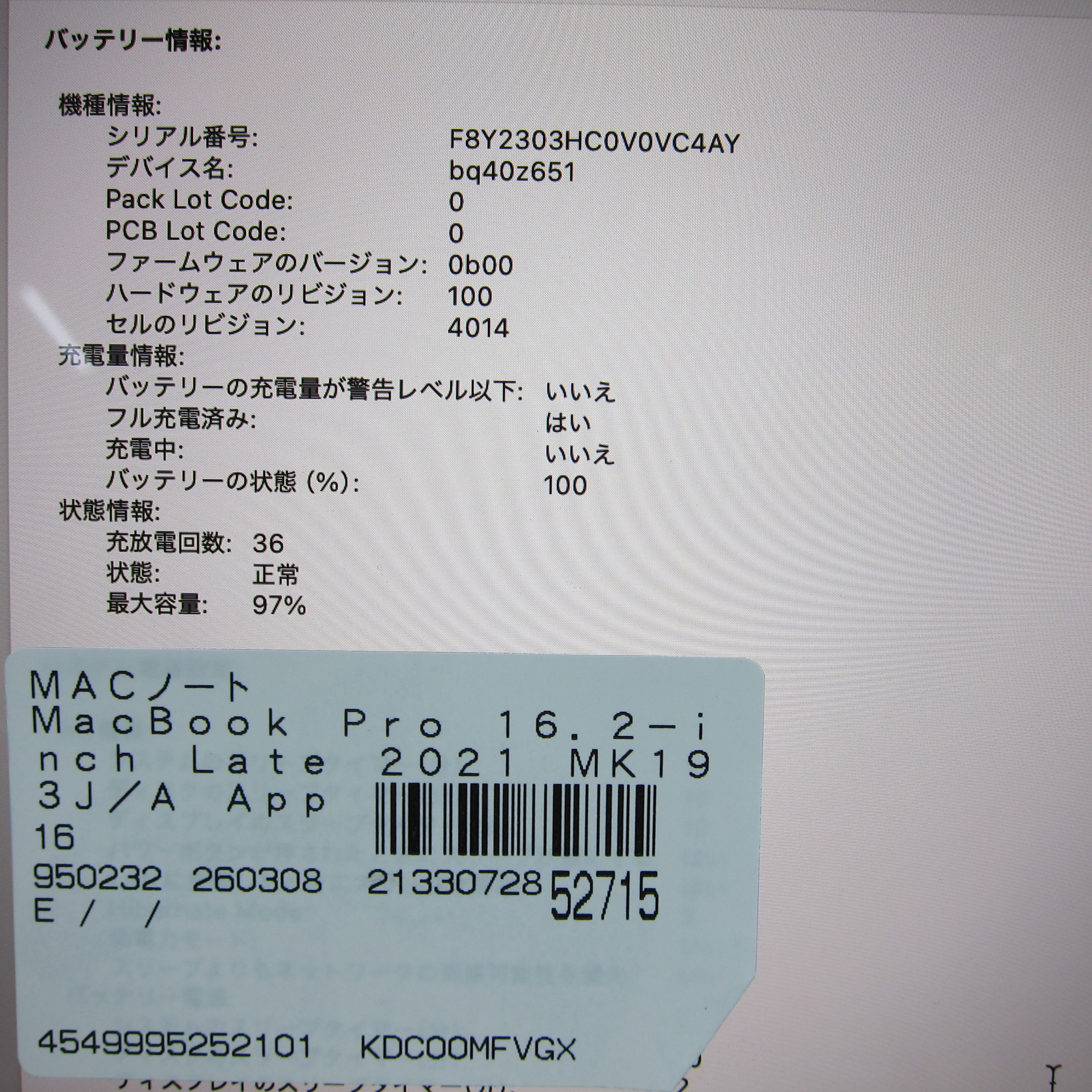 〔中古品〕 MacBook Pro 16.2-inch Late-2021 MK193J/A Apple M1 Pro 10コアCPU_16コアGPU 16GB SSD1TB スペースグレイ 〔15.3 Sequoia〕 [グラフィック:オンボード/JISキーボード]