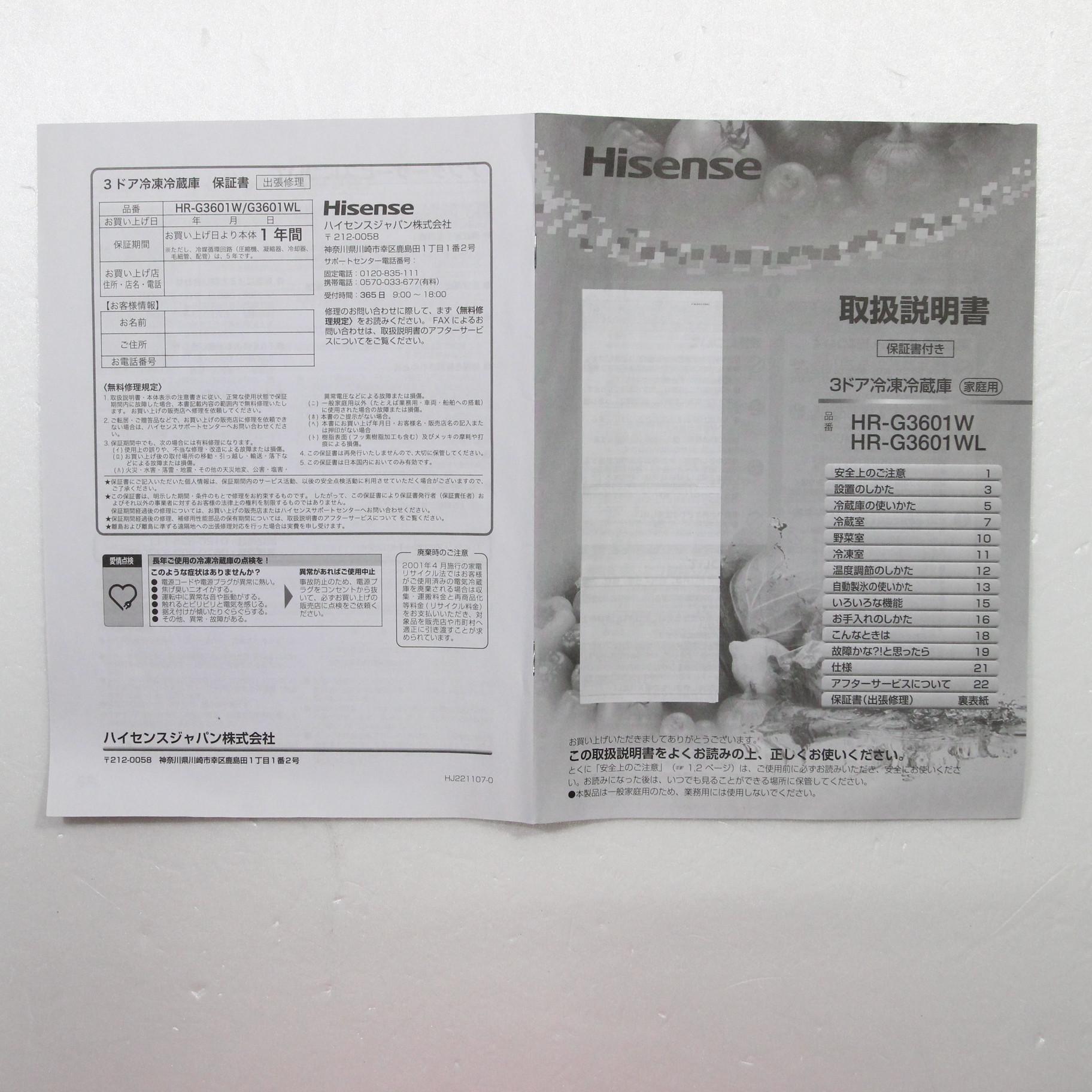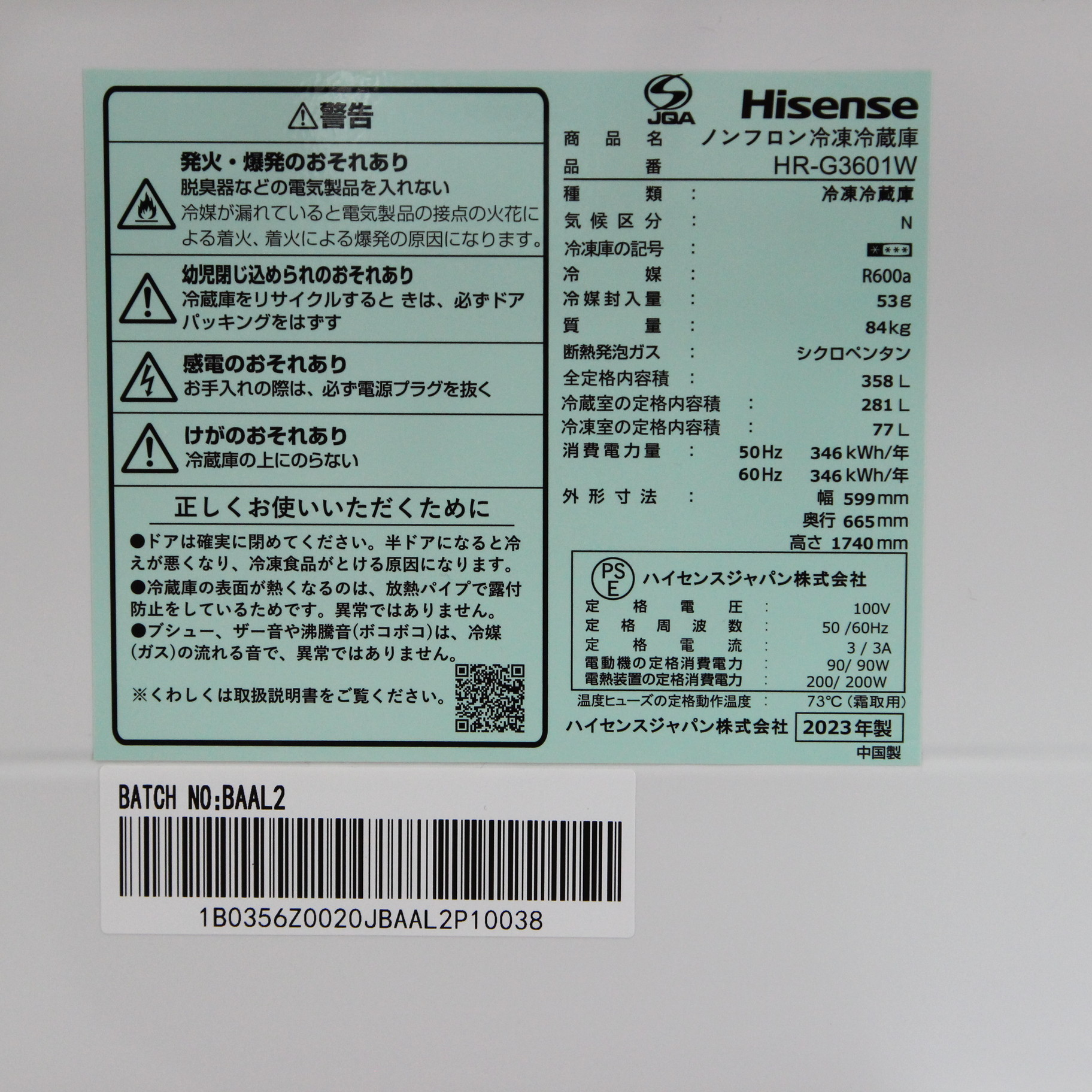 〔展示品〕 冷蔵庫 ガラスホワイト HR-G3601W [幅59.8cm /358L /3ドア /右開きタイプ /2021年]