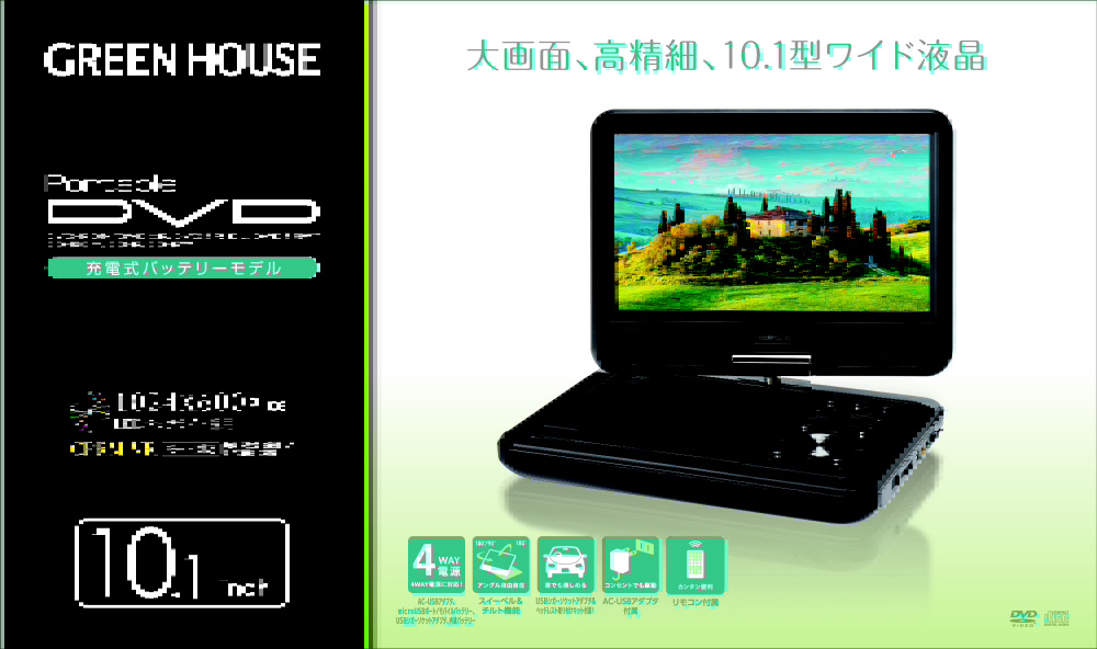 〔中古品〕 ポータブルDVDプレーヤー バッテリー対応 ブラック GH-PDV10PC-BK [10.1V型ワイド]