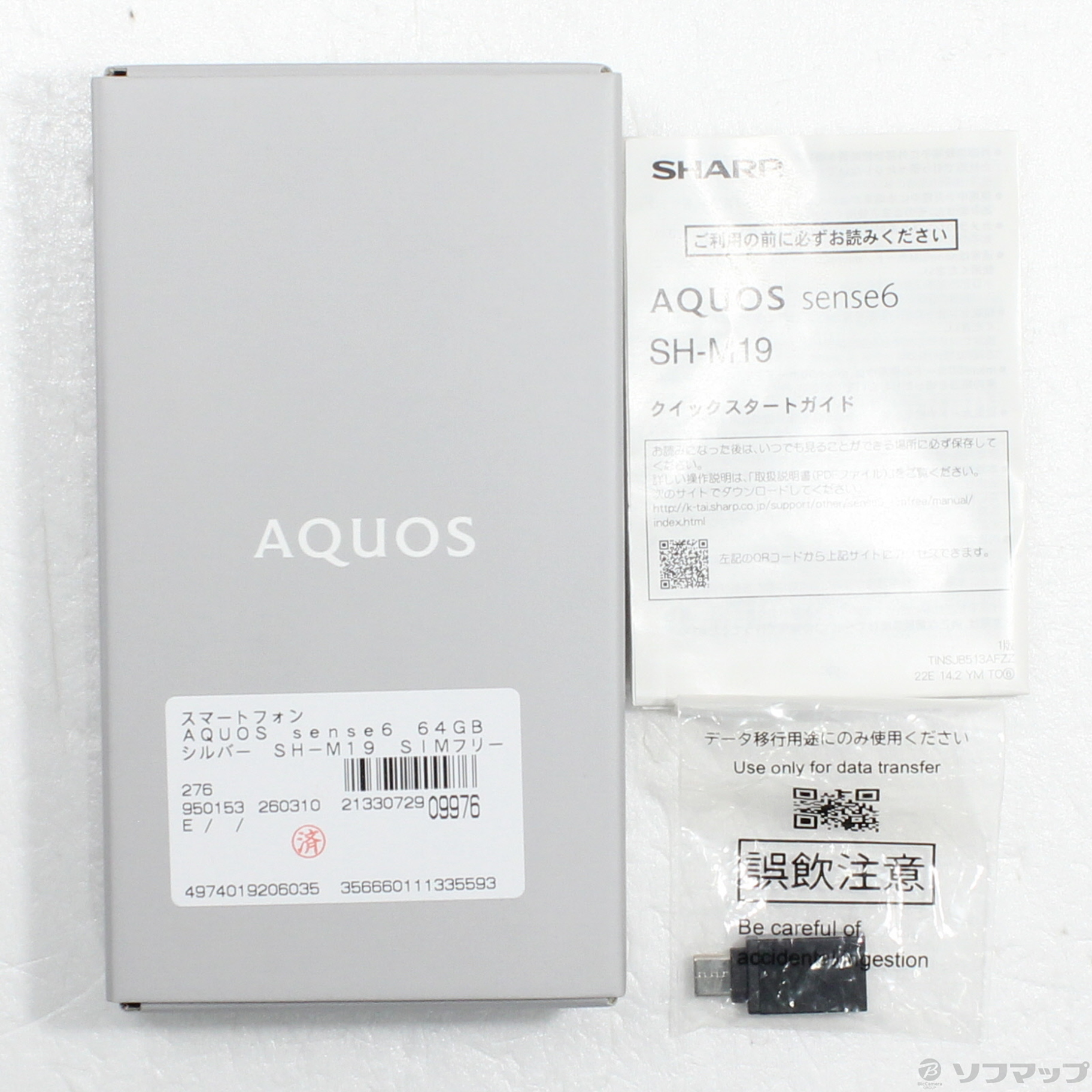 〔中古品〕 AQUOS sense6 64GB シルバー SH-M19 SIMフリー [6.1インチ有機EL/Snapdragon 690 5G/RAM:4GB/ナノSIM&eSIM]