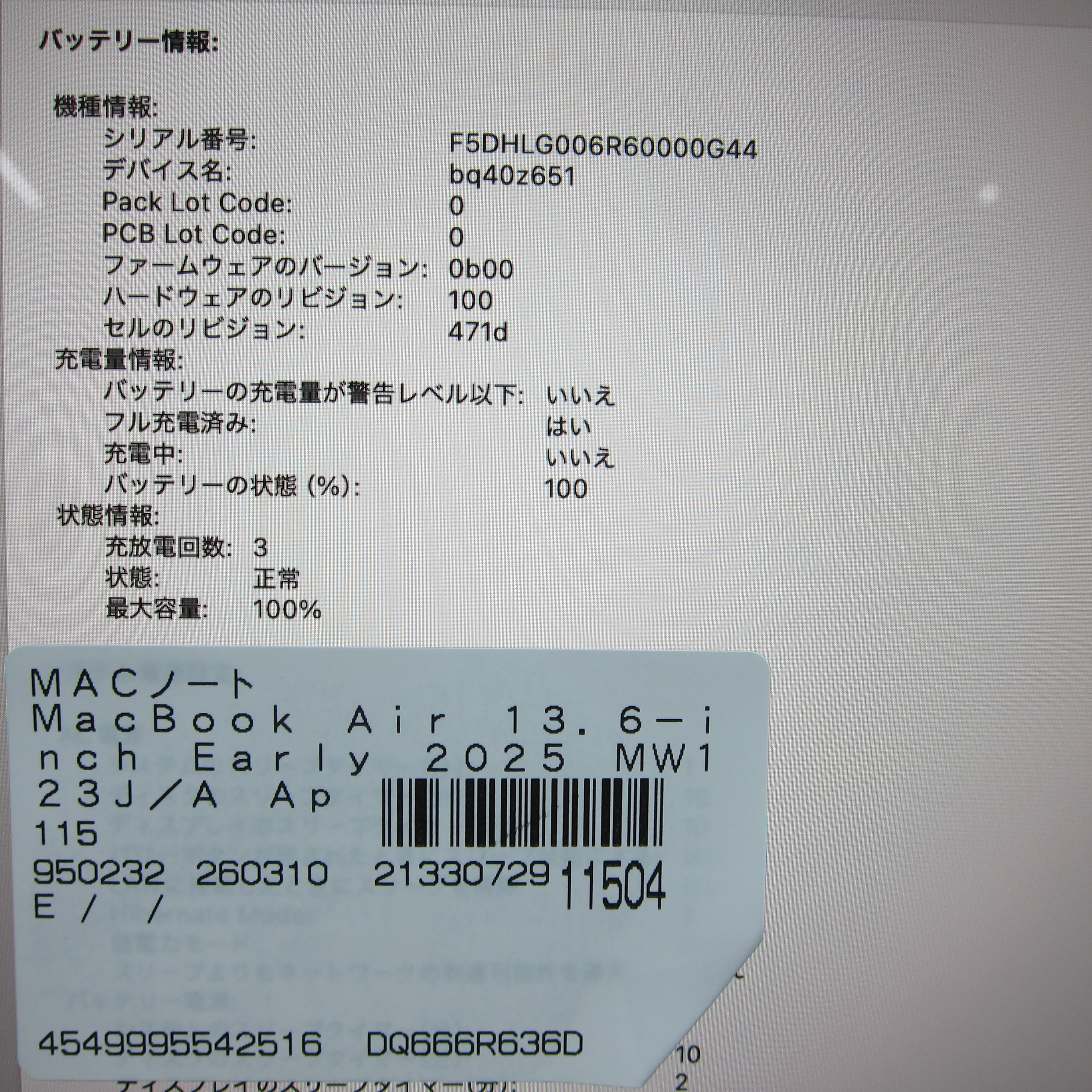 〔中古品〕 MacBook Air 13.6-inch Early-2025 MW123J/A Apple M4 10コアCPU_8コアGPU 16GB SSD256GB ミッドナイト 〔15.7 Sequoia〕 [グラフィック:オンボード/JISキーボード]