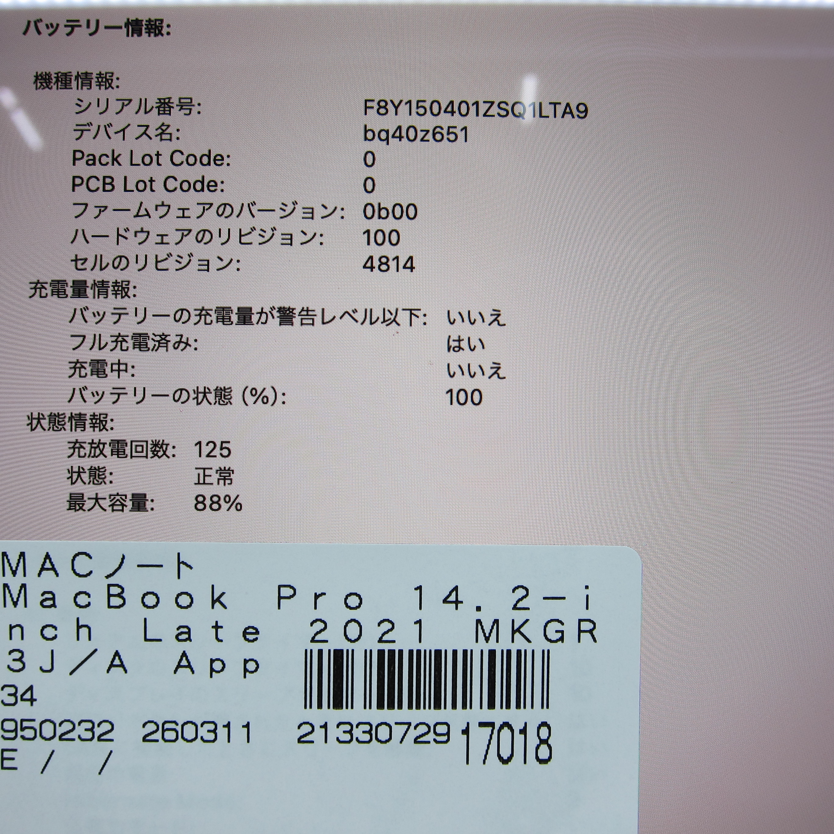 商品名 〔中古品〕 MacBook Pro 14.2-inch Late-2021 MKGR3J/A Apple M1 Pro 8コアCPU_14コアGPU 16GB SSD1TB シルバー 〔14.7 Sonoma〕 [グラフィック:オンボード/JISキーボード]