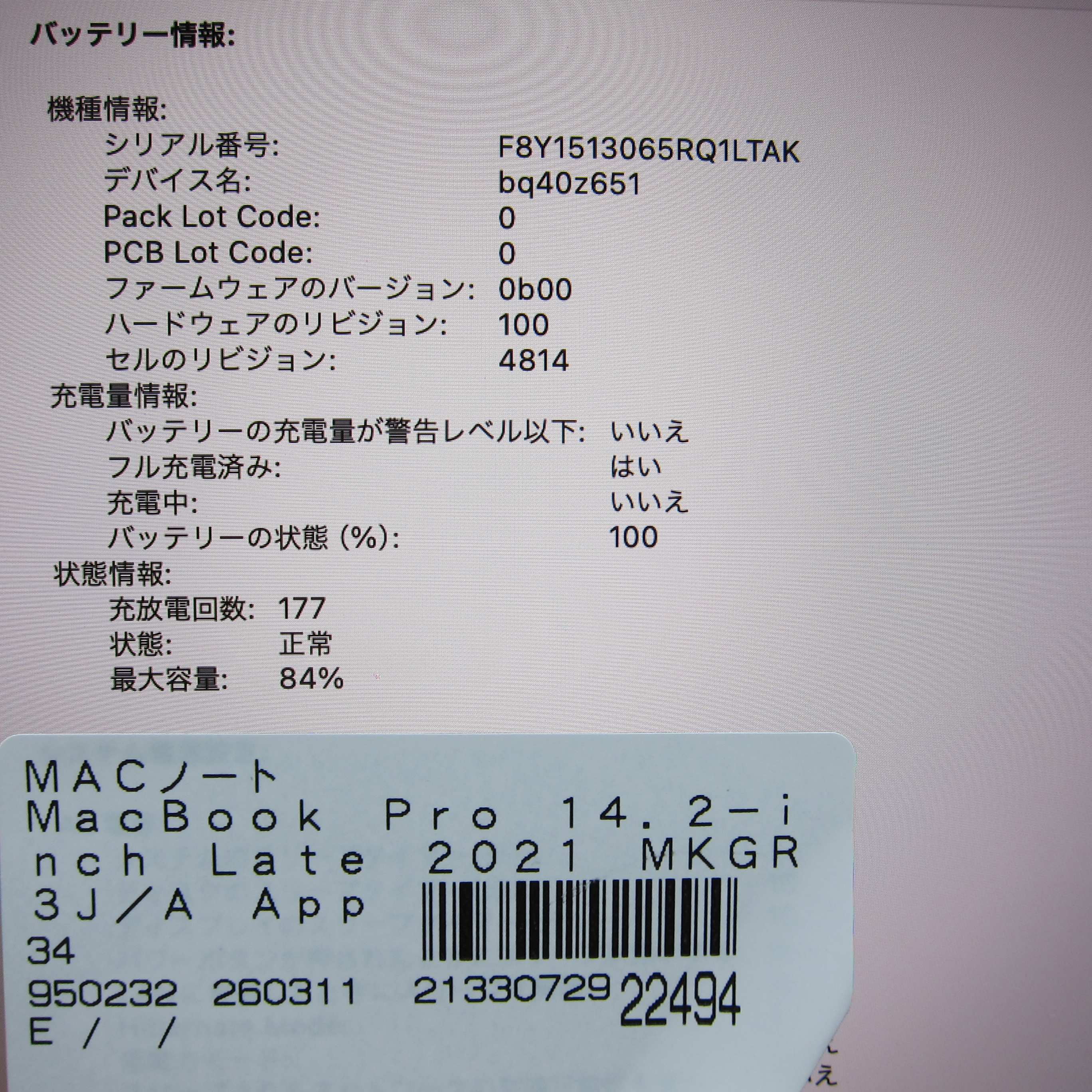 〔中古品〕 MacBook Pro 14.2-inch Late-2021 MKGR3J/A Apple M1 Pro 8コアCPU_14コアGPU 16GB SSD1TB シルバー 〔14.7 Sonoma〕 [グラフィック:オンボード/JISキーボード]