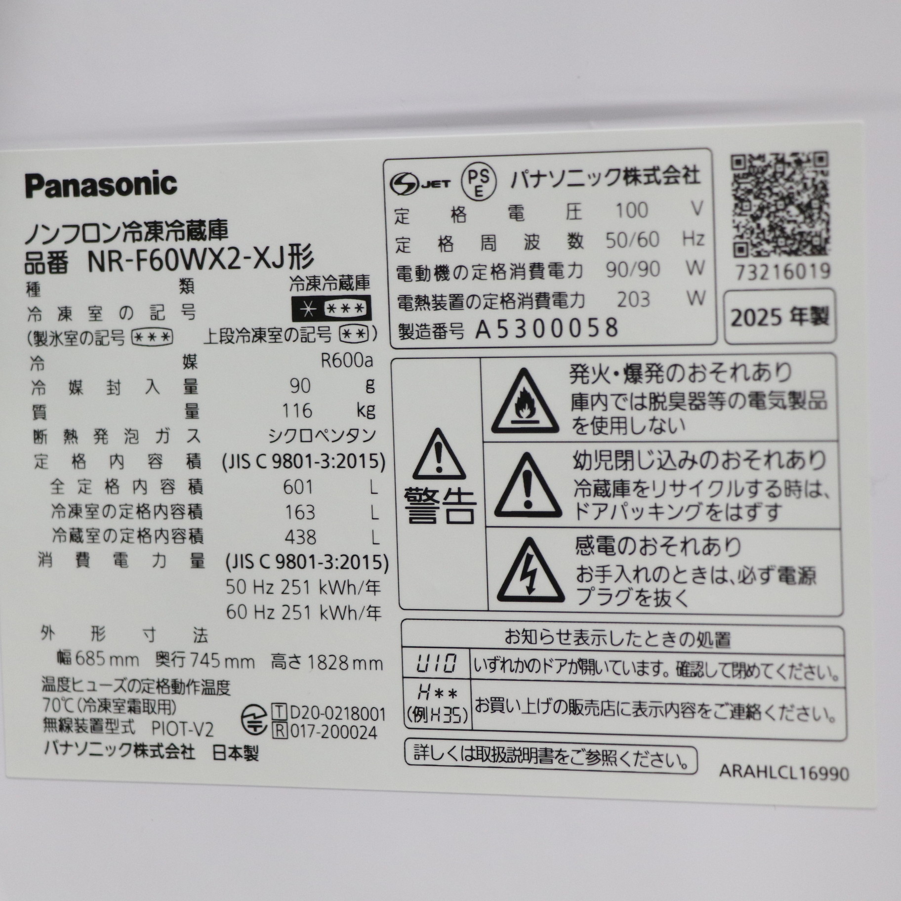 〔展示品〕 冷蔵庫 WXタイプ オニキスミラー(ミラー加工) NR-F60WX2-XJ