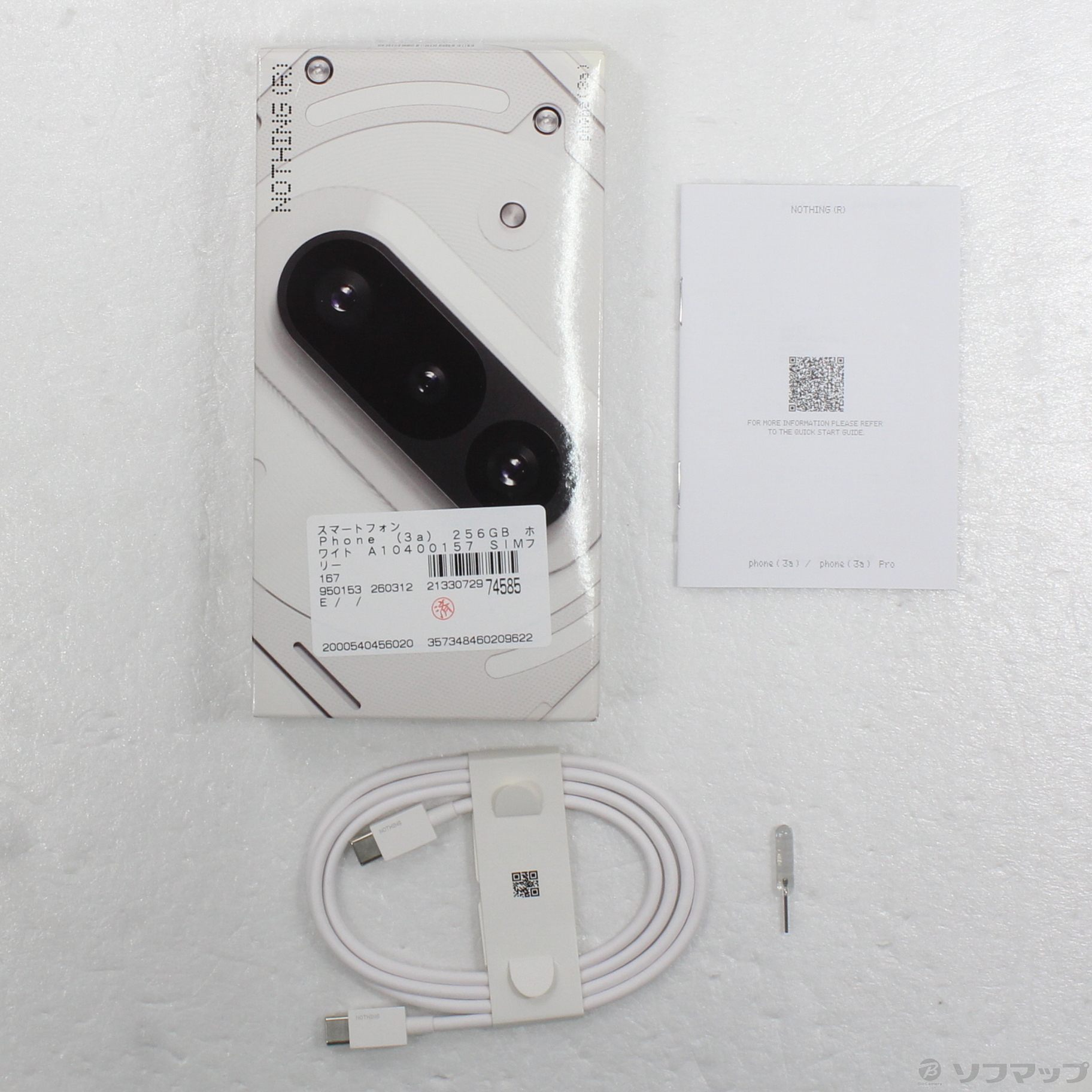 〔中古品〕 Phone (3a) 256GB ホワイト A10400157 SIMフリー [6.77インチ有機EL/Snapdragon 7s Gen 3 Mobile Platform/RAM:12GB/ナノSIM&eSIM]