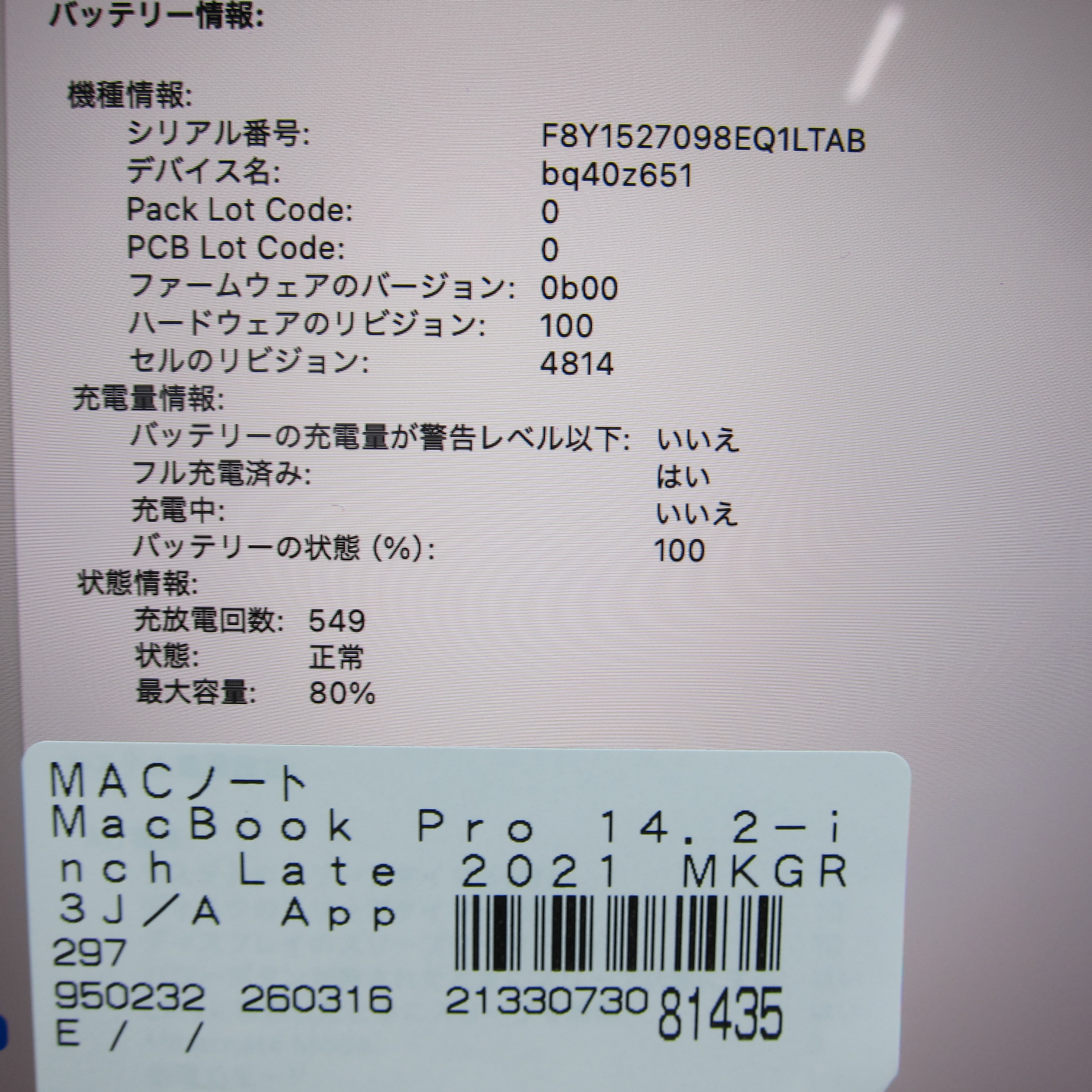 〔中古品〕 MacBook Pro 14.2-inch Late-2021 MKGR3J/A Apple M1 Pro 10コアCPU_16コアGPU 16GB SSD2TB シルバー 〔15.7 Sequoia〕 [グラフィック:オンボード/JISキーボード]