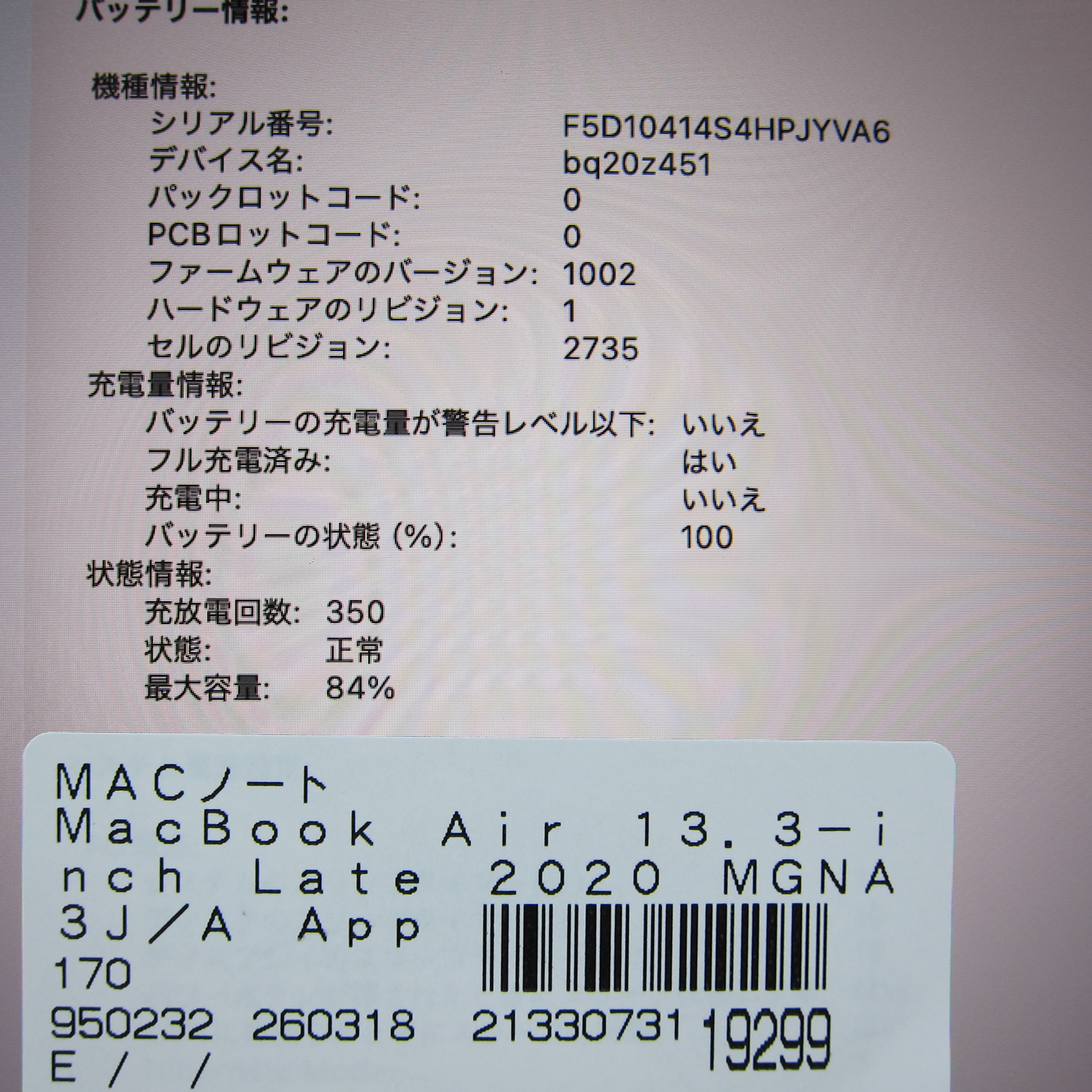 〔中古品〕 MacBook Air 13.3-inch Late-2020 MGNA3J/A Apple M1 8コアCPU_8コアGPU 16GB SSD2TB シルバー 〔26.2 Tahoe〕 [グラフィック:オンボード/JISキーボード]