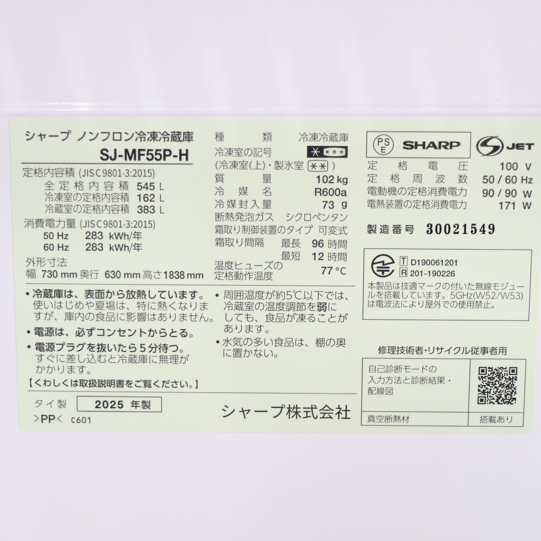 ▼同型番の新品商品はこちら![]() SHARP(シャープ) プラズマクラスター冷蔵庫 ダスクダークメタル SJ-MF55P-H [幅73cm /545L /6ドア /観音開きタイプ] 【基本設置料金セット】 ¥261,800(税込) 26,180ポイントサービス 在庫限り |