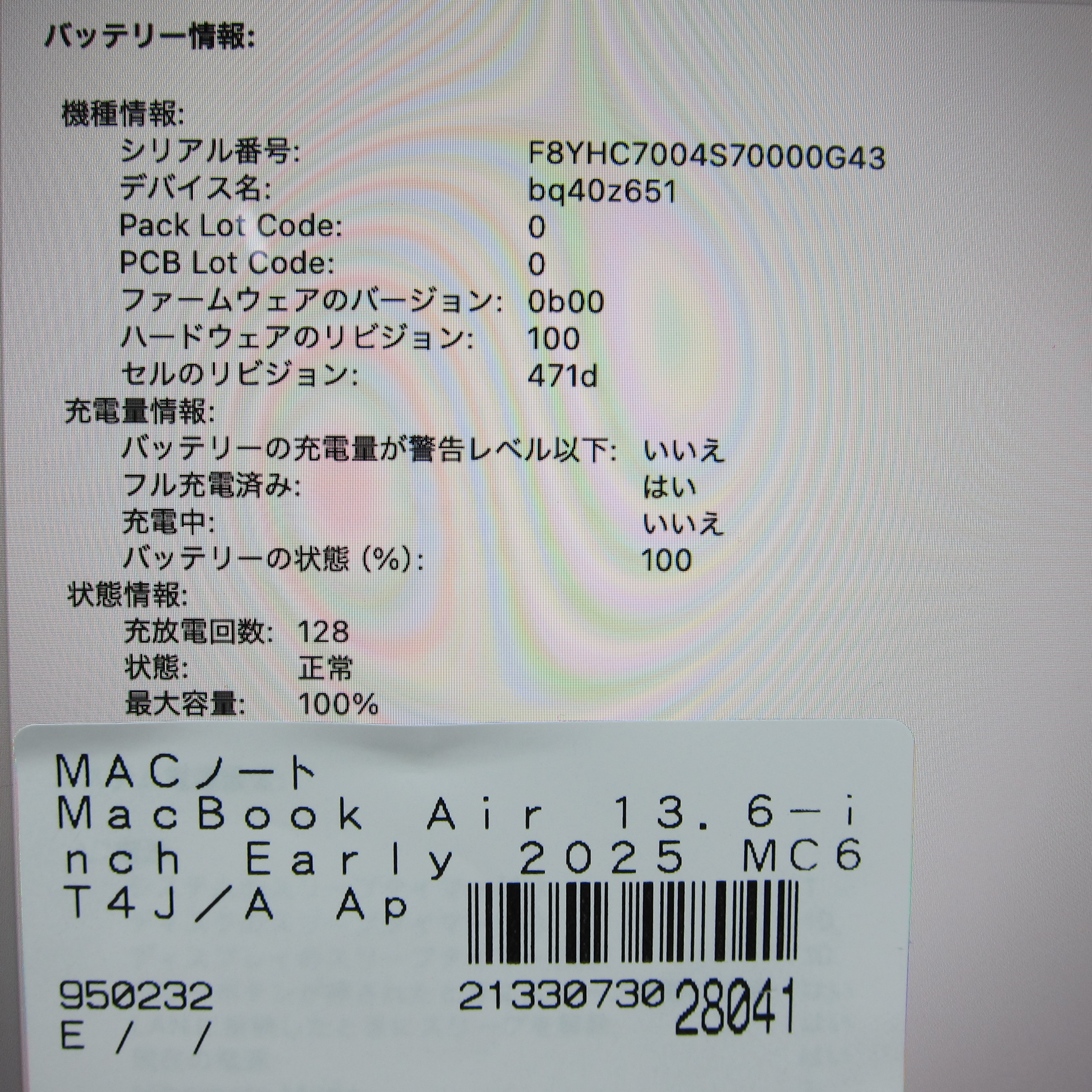 〔展示品〕 MacBook Air 13.6-inch Early-2025 MC6T4J/A Apple M4 10コアCPU_8コアGPU 16GB SSD256GB スカイブルー 〔15.5 Sequoia〕 [グラフィック:オンボード/JISキーボード]