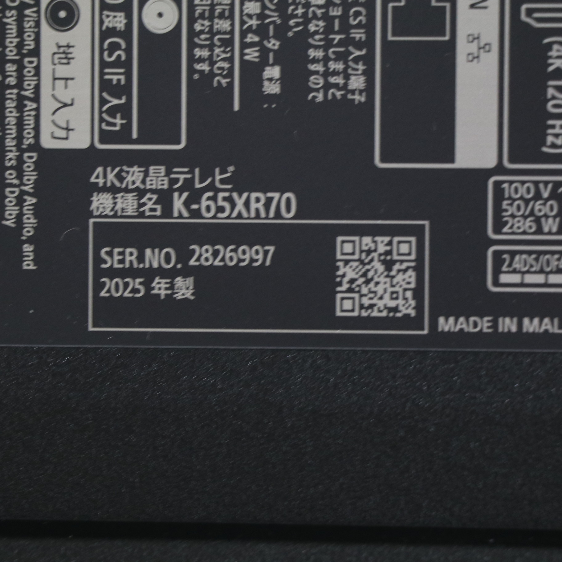 ![SONY(ソニー) 液晶テレビ BRAVIA(ブラビア) K-65XR70 [65V型 /Bluetooth対応 /4K対応 /BS・CS 4Kチューナー内蔵 /YouTube対応] 【買い替え10000pt】](https://image.sofmap.com/images/product/large/4548736159228.jpg)