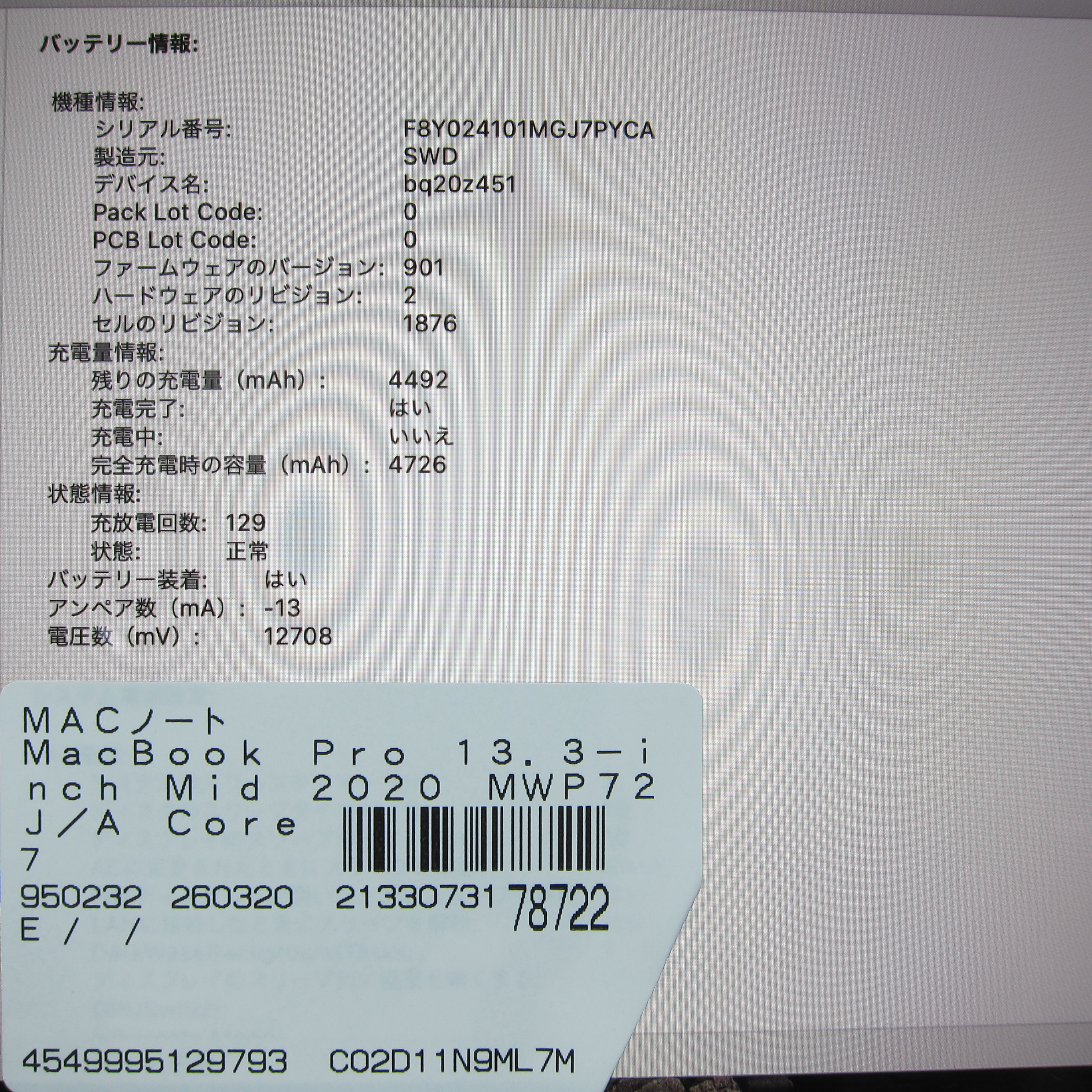 〔中古品〕 MacBook Pro 13.3-inch Mid-2020 MWP72J/A Core_i5 2.0GHz 16GB SSD1TB シルバー 〔10.15 Catalina〕 [グラフィック:Intel Iris Plus Graphics/JISキーボード]