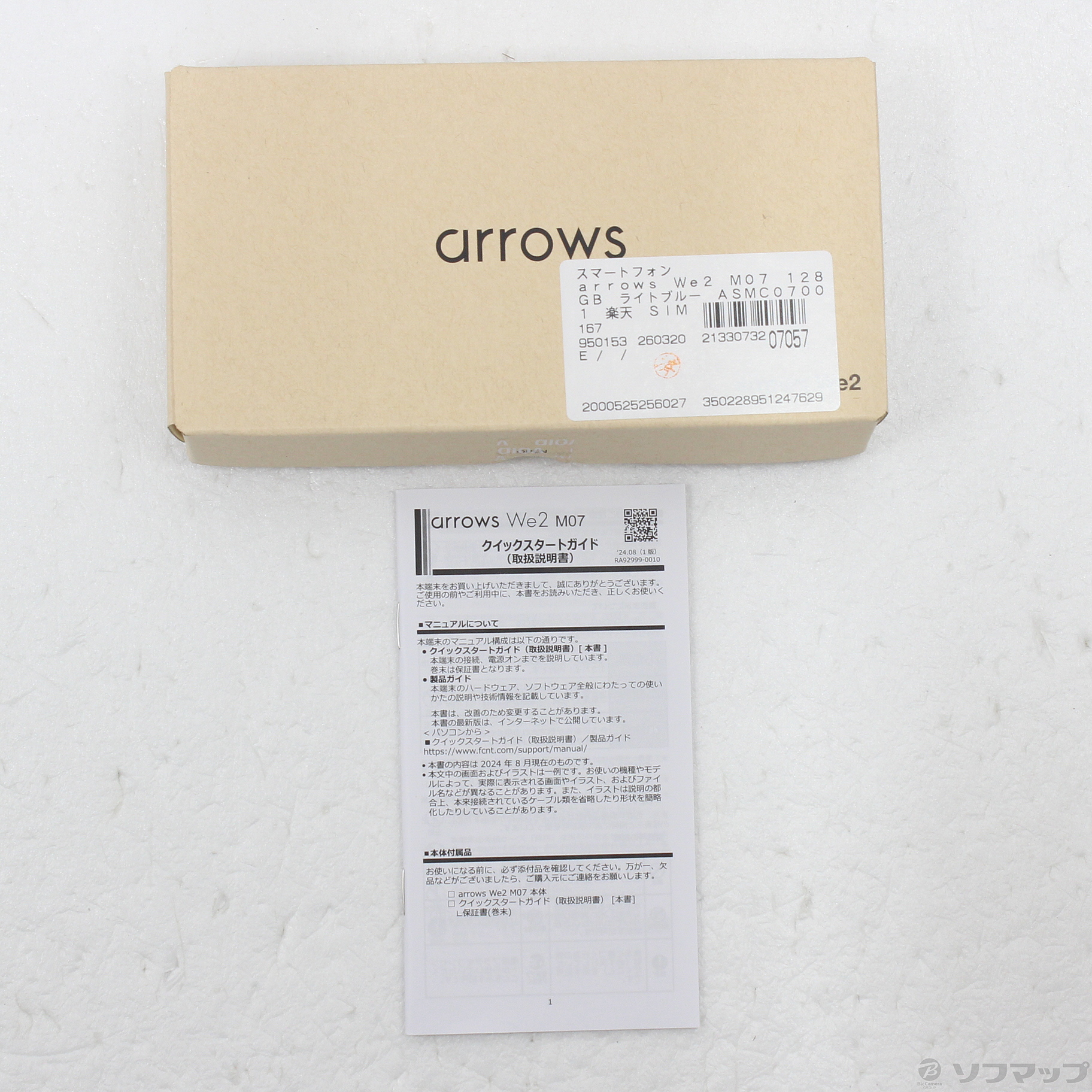 〔中古品〕 arrows We2 M07 128GB ライトブルー ASMC07001 楽天 SIMフリー [6.1インチ液晶/MediaTek Dimensity 7025/RAM:4GB/ナノSIM&eSIM]