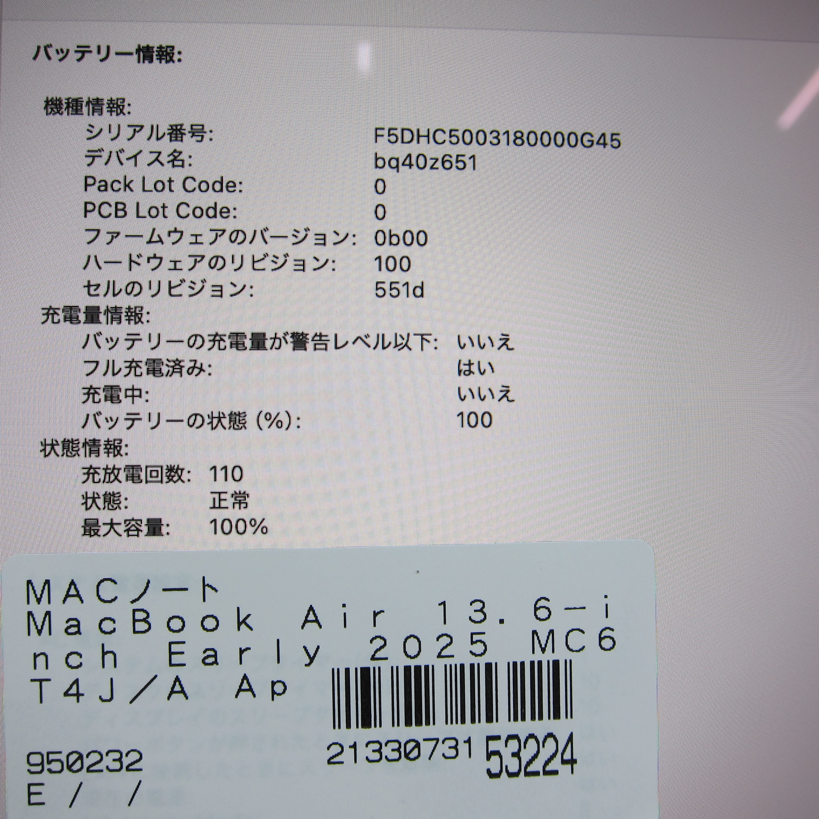 〔展示品〕 MacBook Air 13.6-inch Early-2025 MC6T4J/A Apple M4 10コアCPU_8コアGPU 16GB SSD256GB スカイブルー 〔15.7 Sequoia〕 [グラフィック:オンボード/JISキーボード]