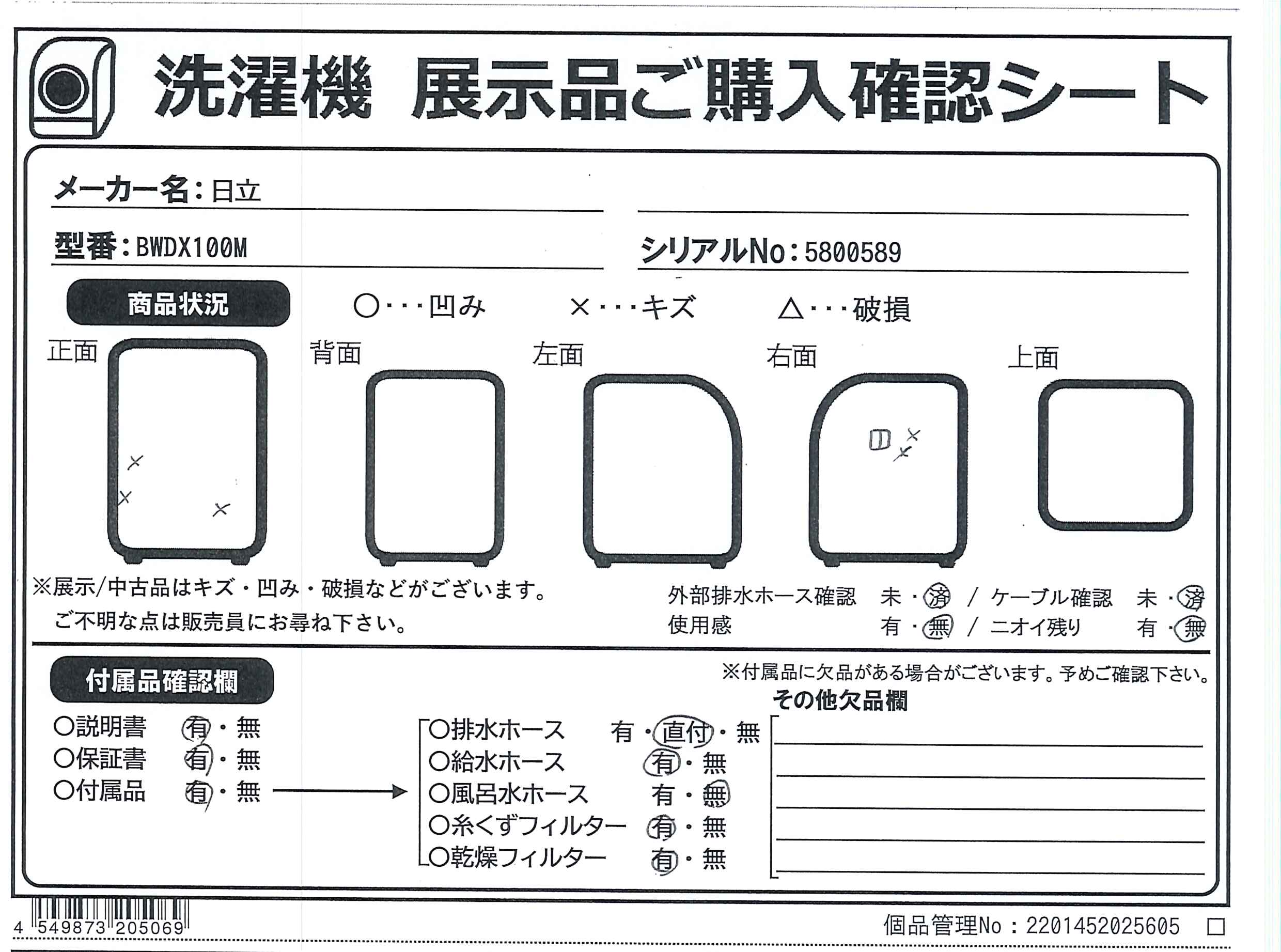 中古商品ランクについて 付属品・商品状態について 〔付属品〕説明書、据付説明書、給水ホース、液体洗剤タンク、柔軟剤タンク、糸くずフィルターX2、乾燥フィルター