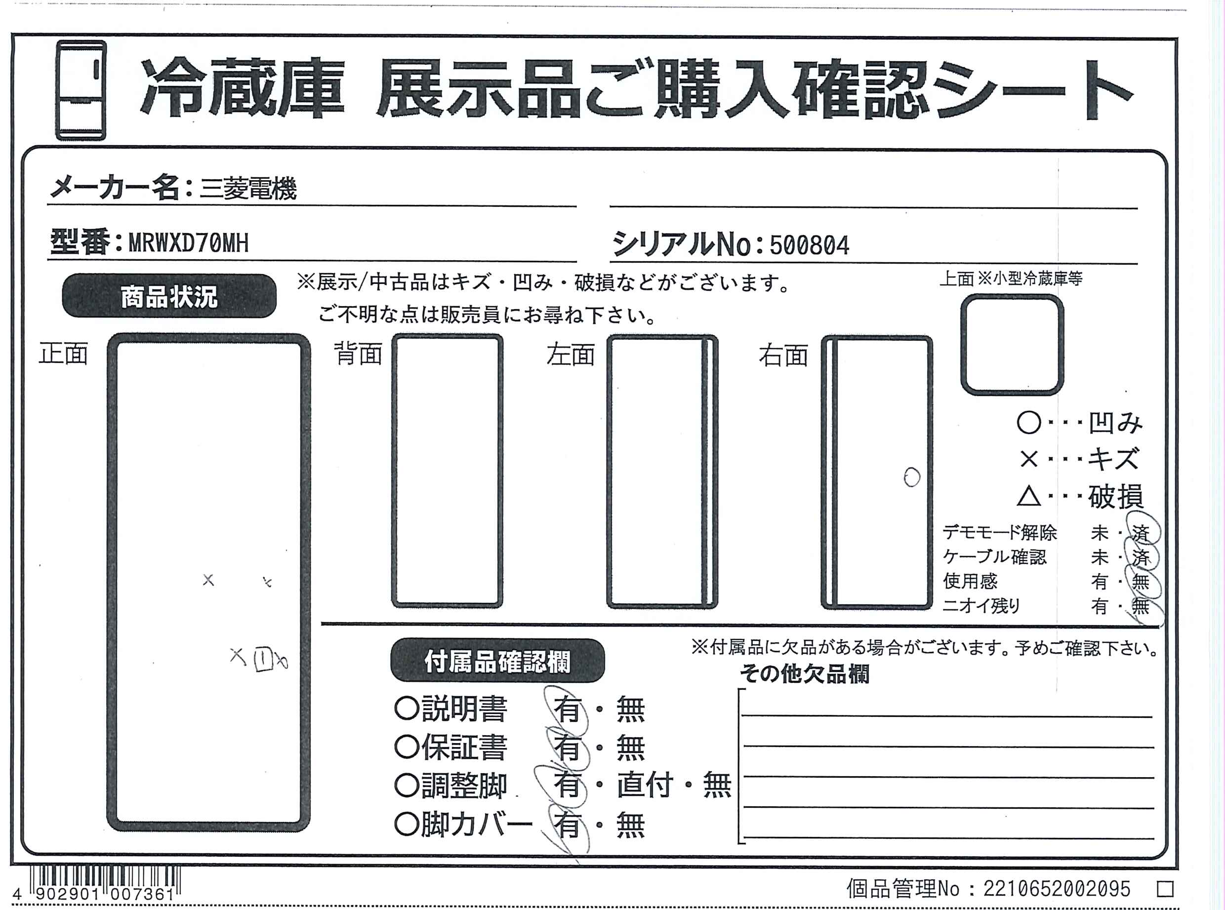 中古商品ランクについて 付属品・商品状態について 〔付属品〕取扱説明書、ガラスシェルフ(上)、ガラスシェルフ(中)、ガラスシェルフ(下)、仕切り、スライドシェルフ(前)、スライドシェルフ(奥)、ワイドチルドケースフタ、ワイドチルドケース、氷点下ストッカーケース、給水タンク(カルキクリーンフィルターつき)、チェンジポケット(大)×2、チェンジポケット(小)×2、フリータマゴケース、タマゴトレイ、ボトルポケット(大)、ボトルポケット(小)、フリーケース(小)、ストッパー、製氷皿、貯氷箱、防音マット、アイスサーバー、瞬冷凍室ケース、アルミトレイ、フリージングケース(上)、フリージングケース(下)、野菜ケース、スライドケース、野菜ケース仕切り、調節脚、脚カバー、調整脚用工具セット