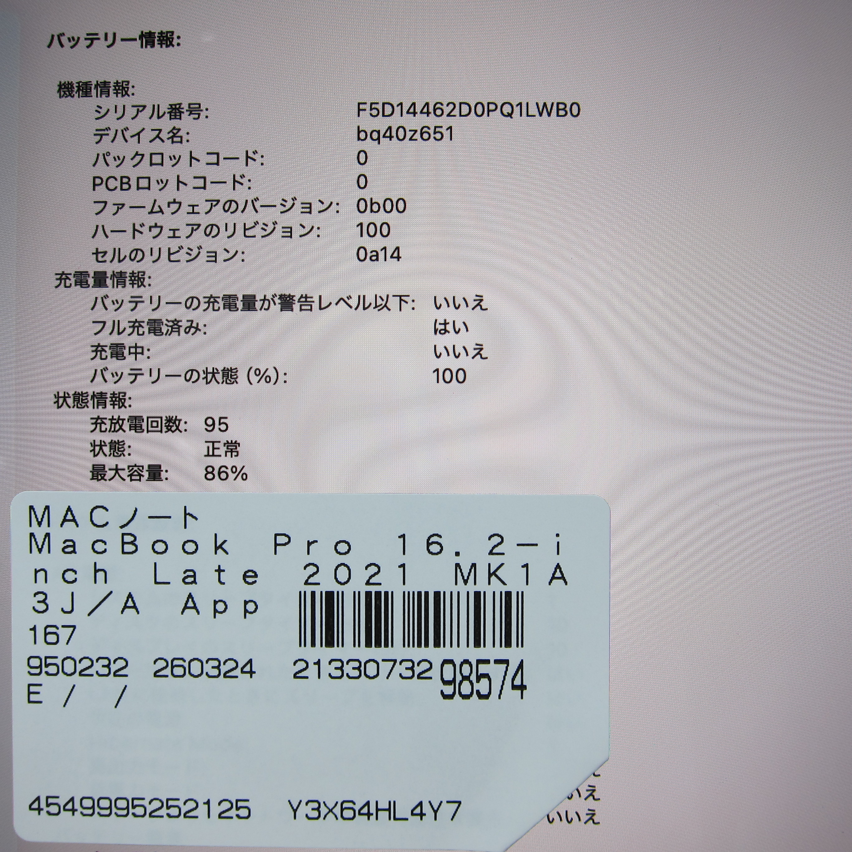 〔中古品〕 MacBook Pro 16.2-inch Late-2021 MK1A3J/A Apple M1 Max 10コアCPU_32コアGPU 64GB SSD4TB スペースグレイ 〔26.3 Tahoe〕 [グラフィック:オンボード/JISキーボード]