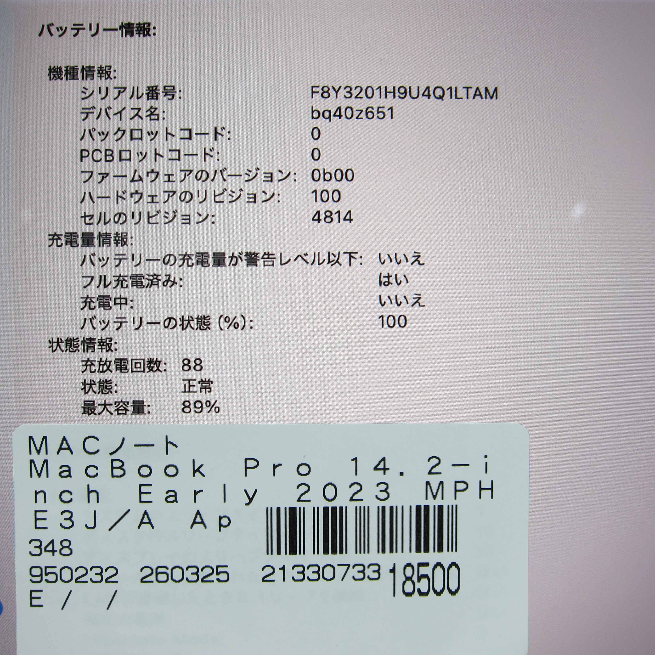 〔中古品〕 MacBook Pro 14.2-inch Early-2023 MPHE3J/A Apple M2 Pro 10コアCPU_16コアGPU 16GB SSD512GB スペースグレイ 〔26.3 Tahoe〕 [グラフィック:オンボード/JISキーボード]