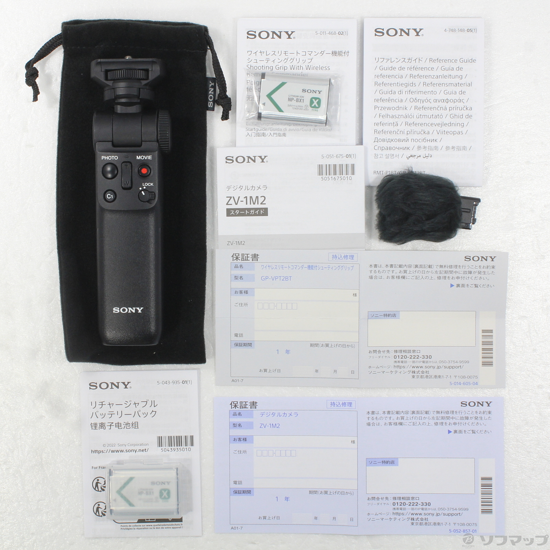 ワイヤレスリモートコマンダー機能付シューティンググリップ、バッテリーパック(計2個 ※本体同梱分1個を含む)がセット。