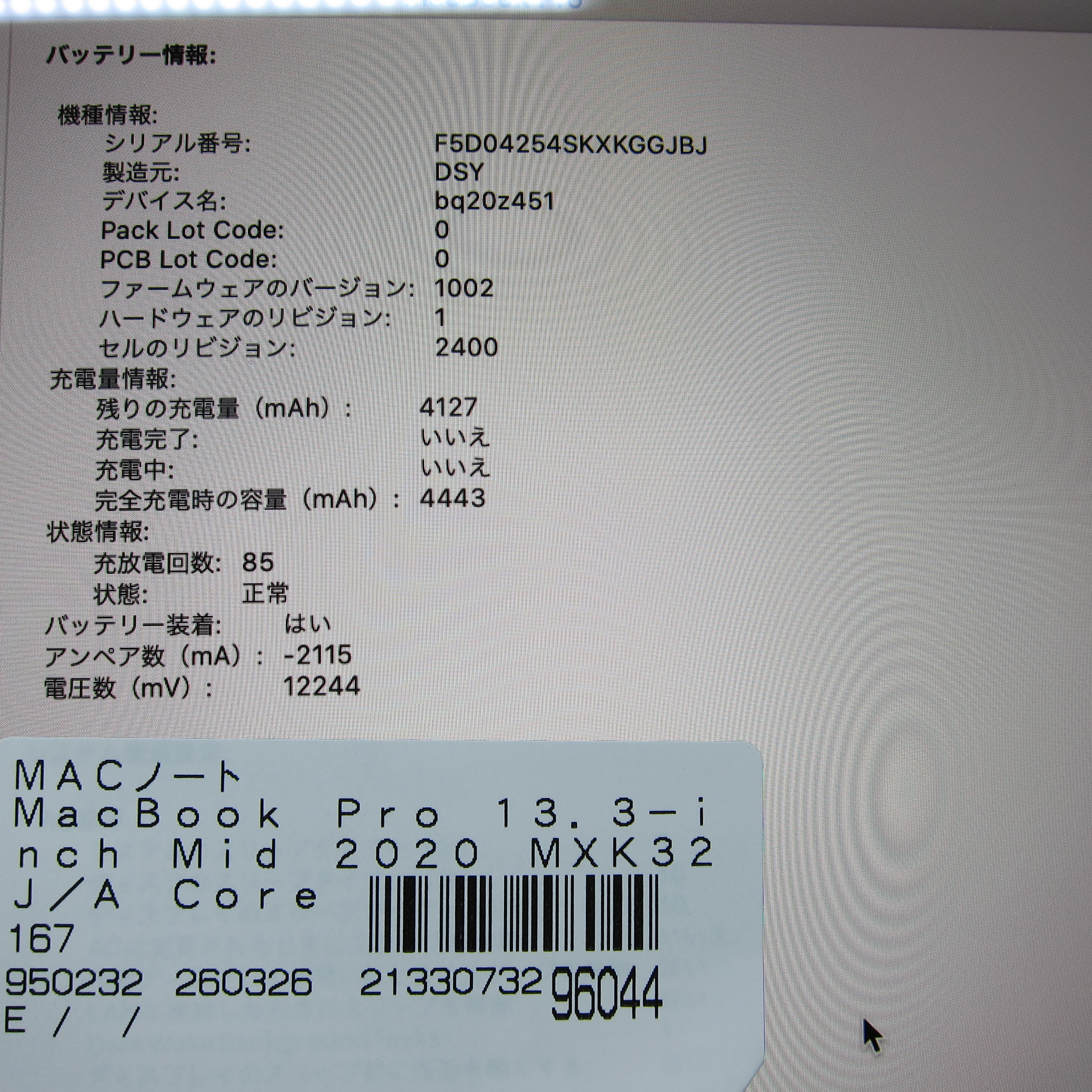 〔中古品〕 MacBook Pro 13.3-inch Mid-2020 MXK32J/A Core_i5 1.4GHz 8GB SSD256GB スペースグレイ 〔10.15 Catalina〕 [グラフィック:Intel Iris Plus Graphics 645(CPU内蔵)/JISキーボード]