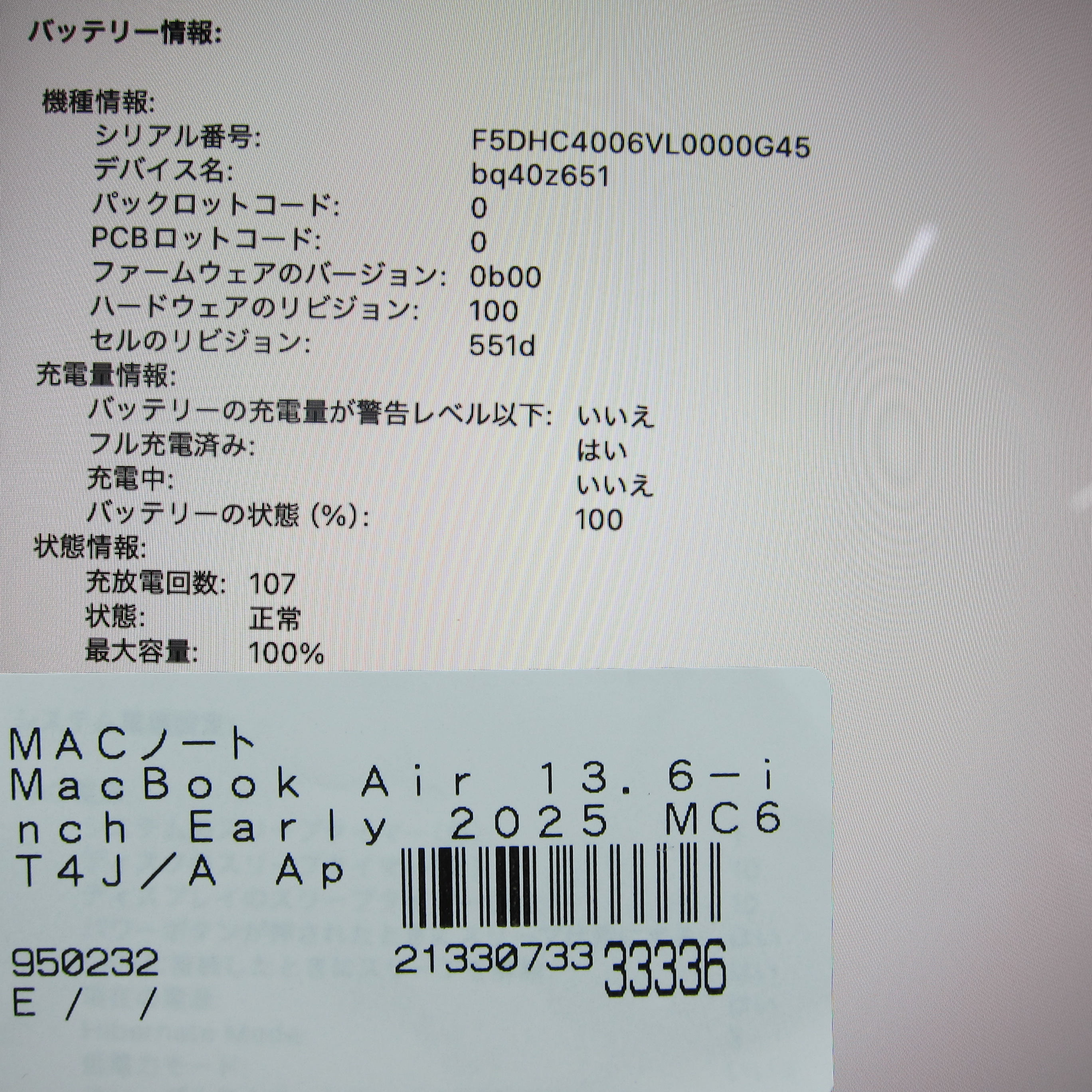 〔展示品〕 MacBook Air 13.6-inch Early-2025 MC6T4J/A Apple M4 10コアCPU_8コアGPU 16GB SSD256GB スカイブルー 〔macOS v26.3.2〕 [グラフィック:オンボード/JISキーボード]