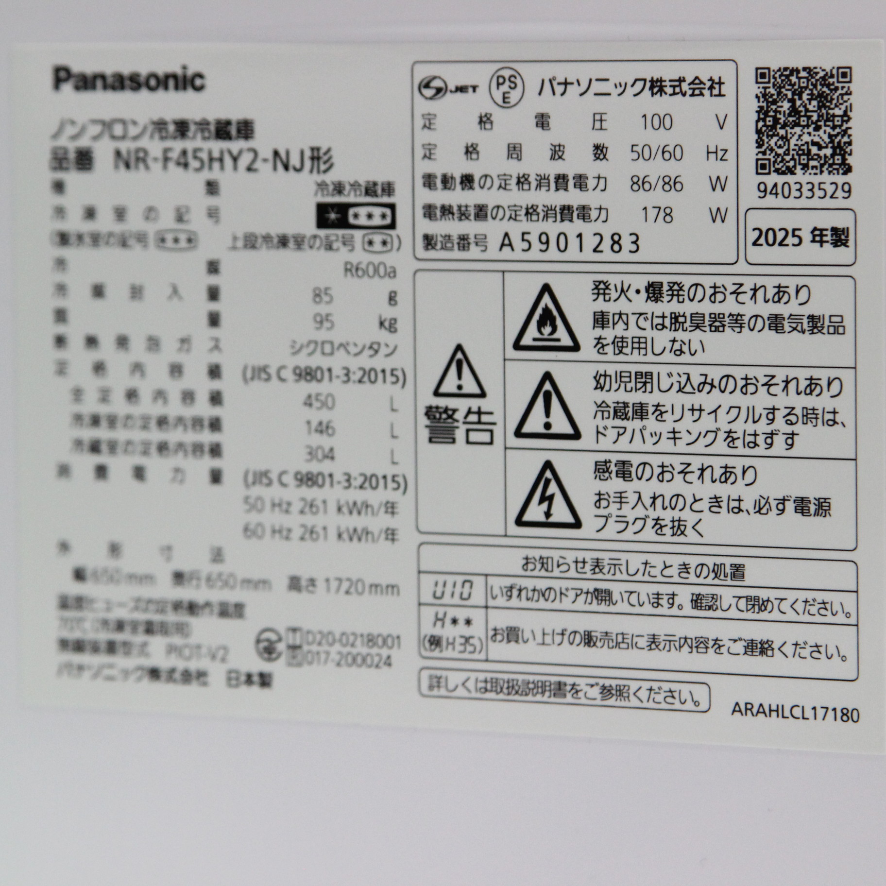 〔展示品〕 HYタイプ ヘアラインシャンパン NR-F45HY2-NJ [65.0 /450 /6ドア /観音開きタイプ /2025年]