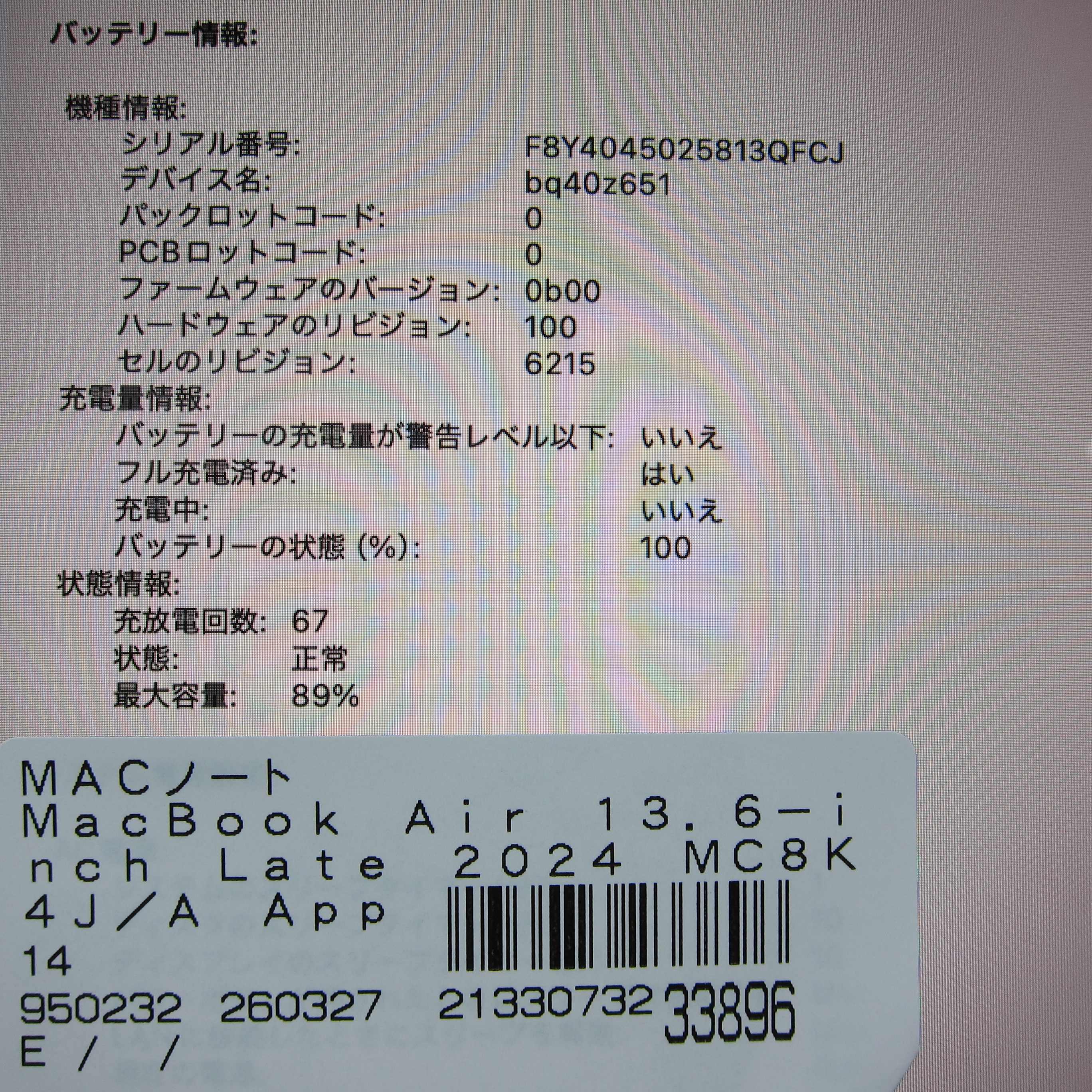 〔中古品〕 MacBook Air 13.6-inch Late-2024 MC8K4J/A Apple M3 8コアCPU_10コアGPU 16GB SSD256GB ミッドナイト 〔macOS Sequoia v15〕 [グラフィック:オンボード/USキーボード]