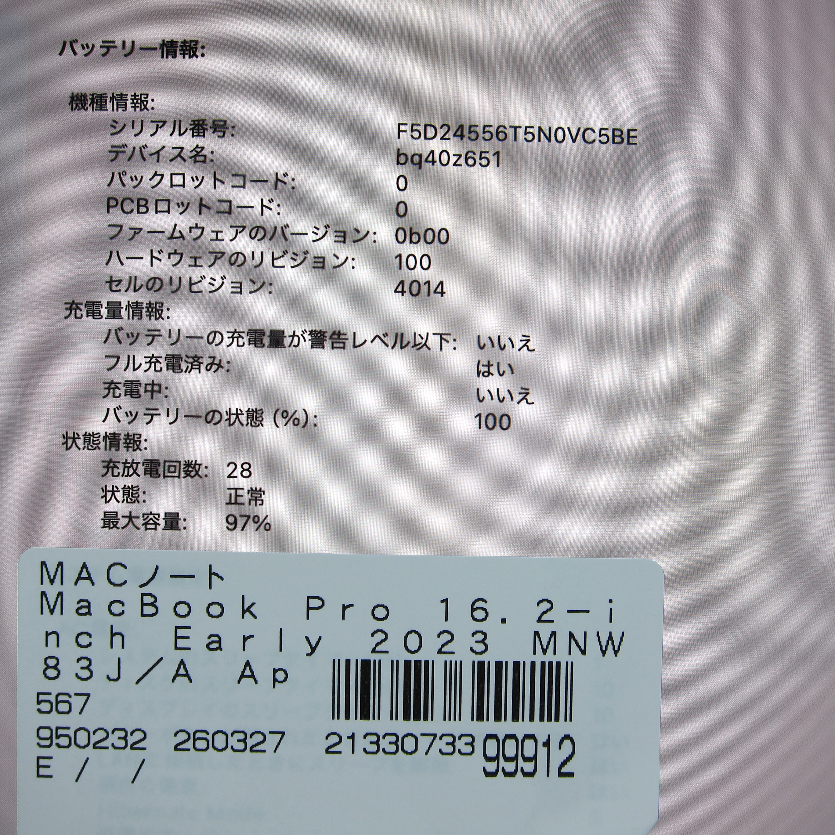 〔中古品〕 MacBook Pro 16.2-inch Early-2023 MNW83J/A Apple M2 Pro 12コアCPU_19コアGPU 16GB SSD512GB スペースグレイ 〔26.3 Tahoe〕 [グラフィック:オンボード/JISキーボード]