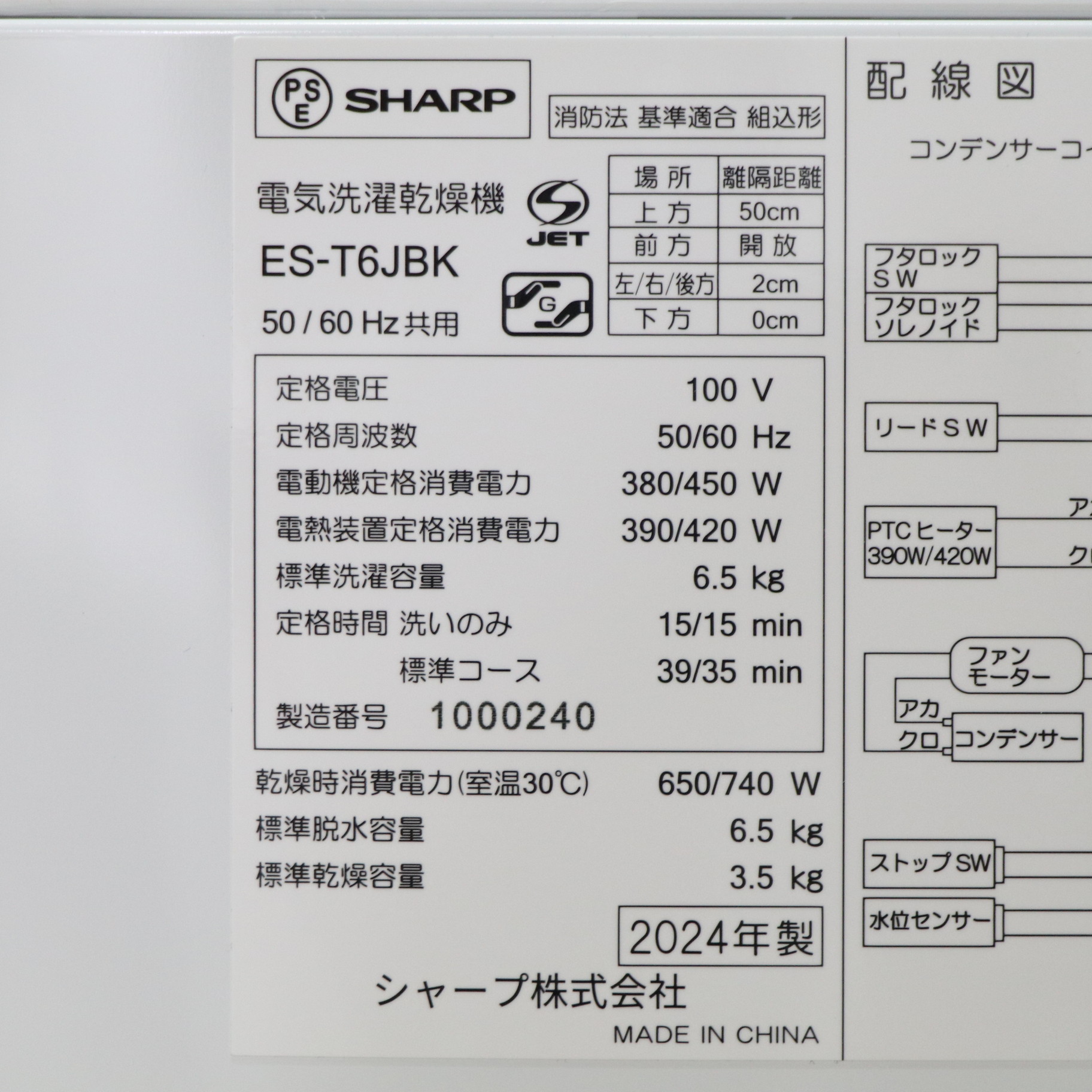 〔展示品〕 縦型洗濯乾燥機 ES-T6JBK [洗濯6.5kg /乾燥3.5kg /ヒーター乾燥(排気タイプ)]