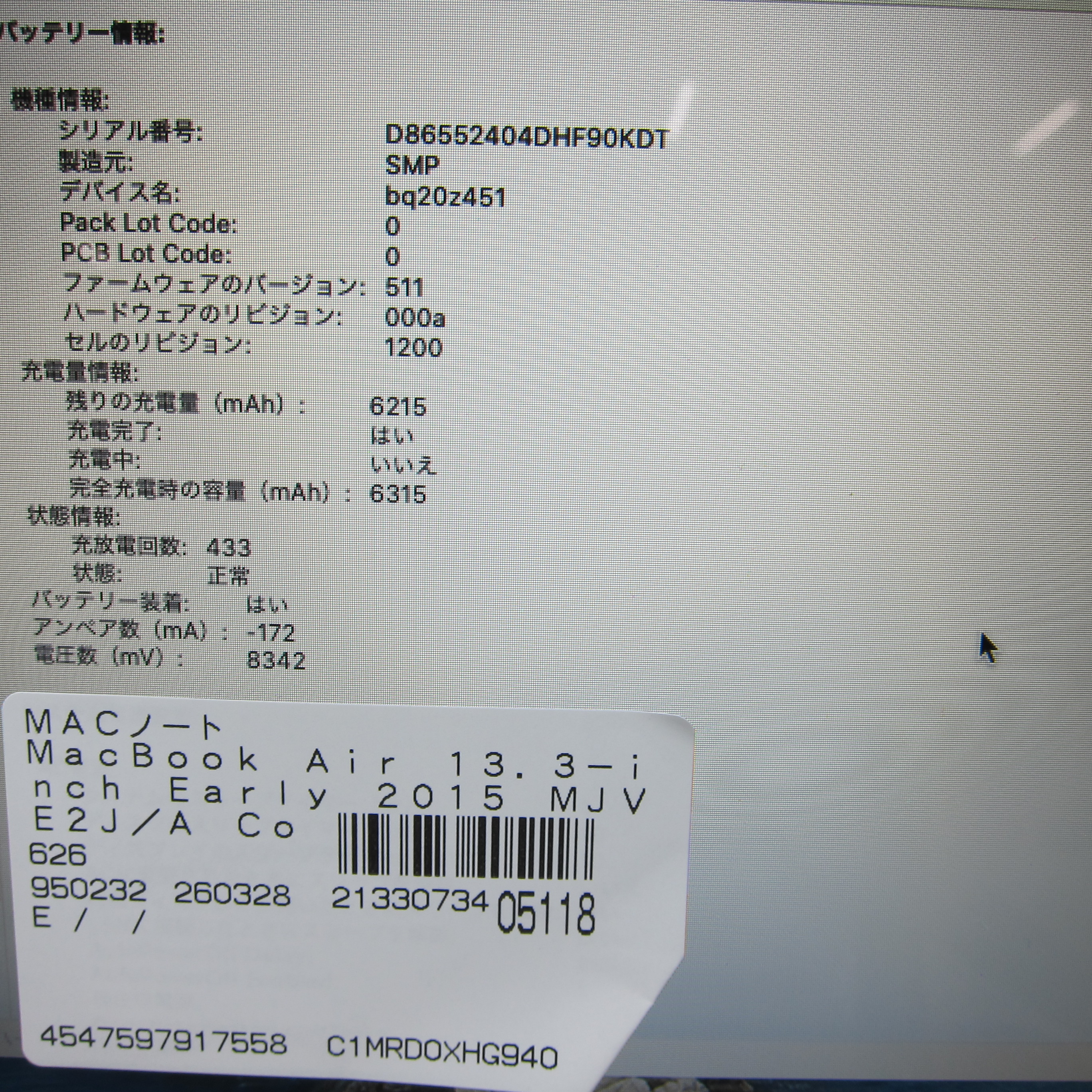 【CPU】Intel Core i5(1.6GHz)、【メモリ】4GB、【SSD】128GB、【ドライブ】無し、【モニター】13.3型ワイド、【グラフィック】Intel HD Graphics 6000、【OS】OS X