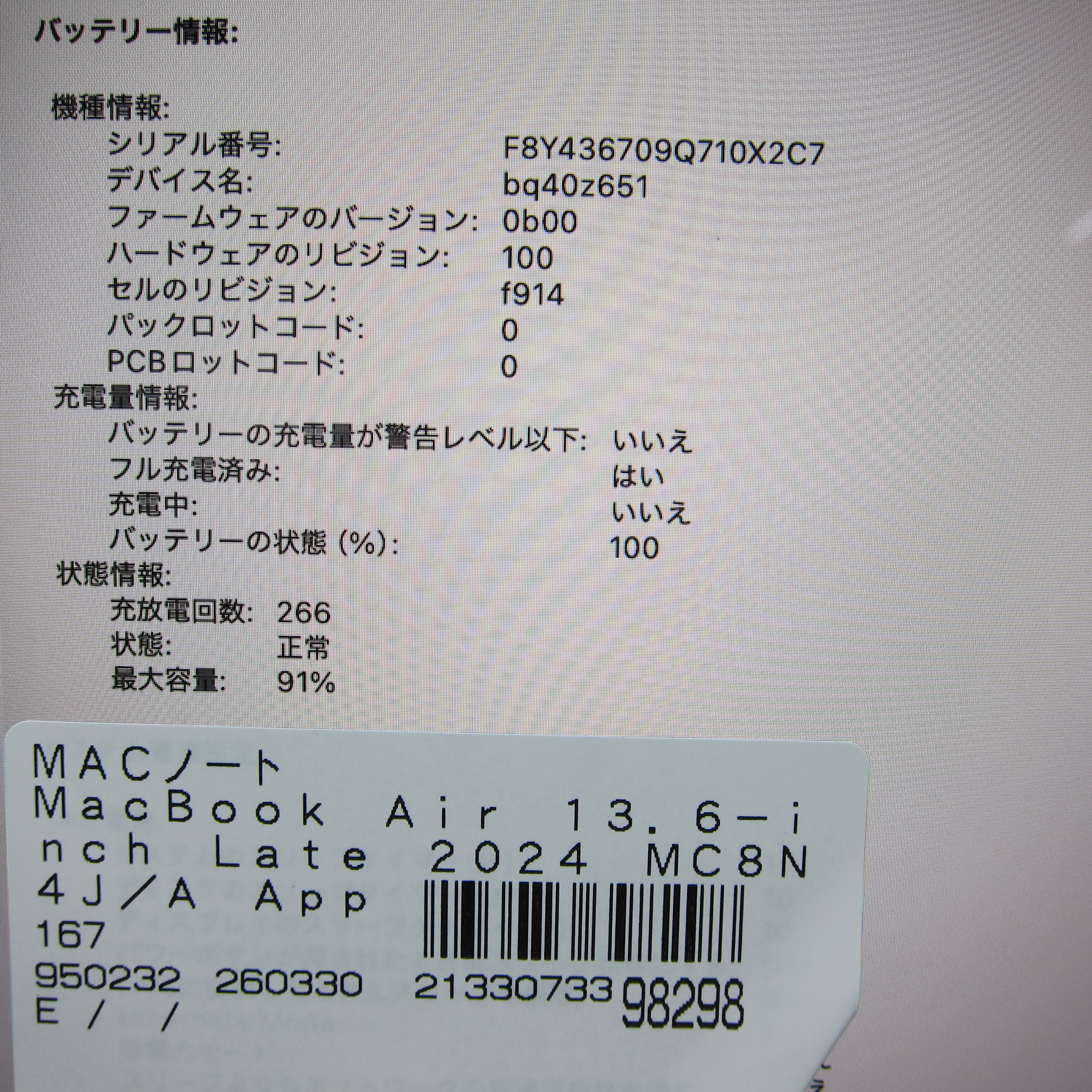 〔中古品〕 MacBook Air 13.6-inch Late-2024 MC8N4J/A Apple M3 8コアCPU_10コアGPU 24GB SSD1TB シルバー 〔26.1 Tahoe〕 [グラフィック:オンボード/USキーボード]