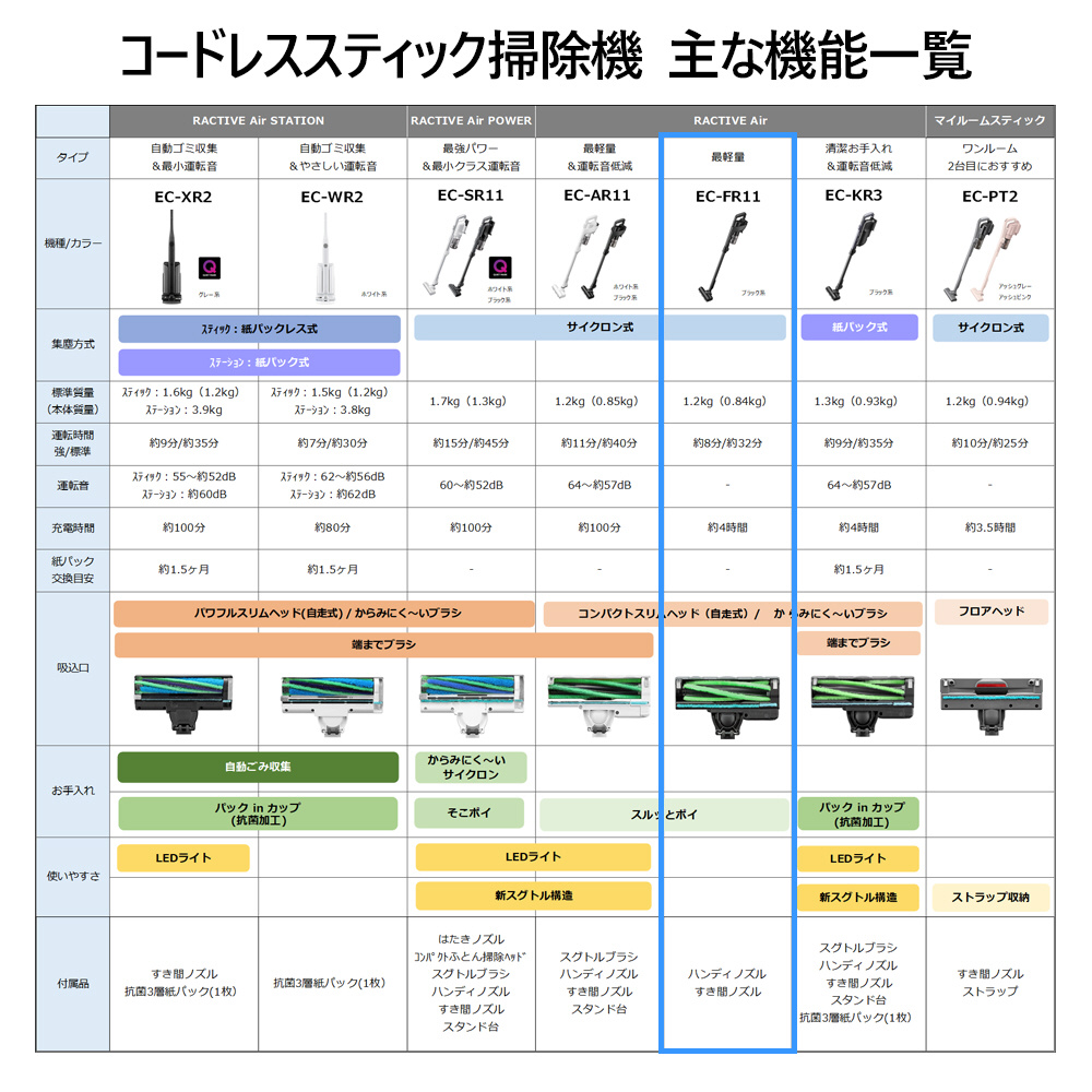 〔展示品〕 未使用品 コードレススティック掃除機 RACTIVE Air EC-FR11-B [サイクロン式 /コードレス]