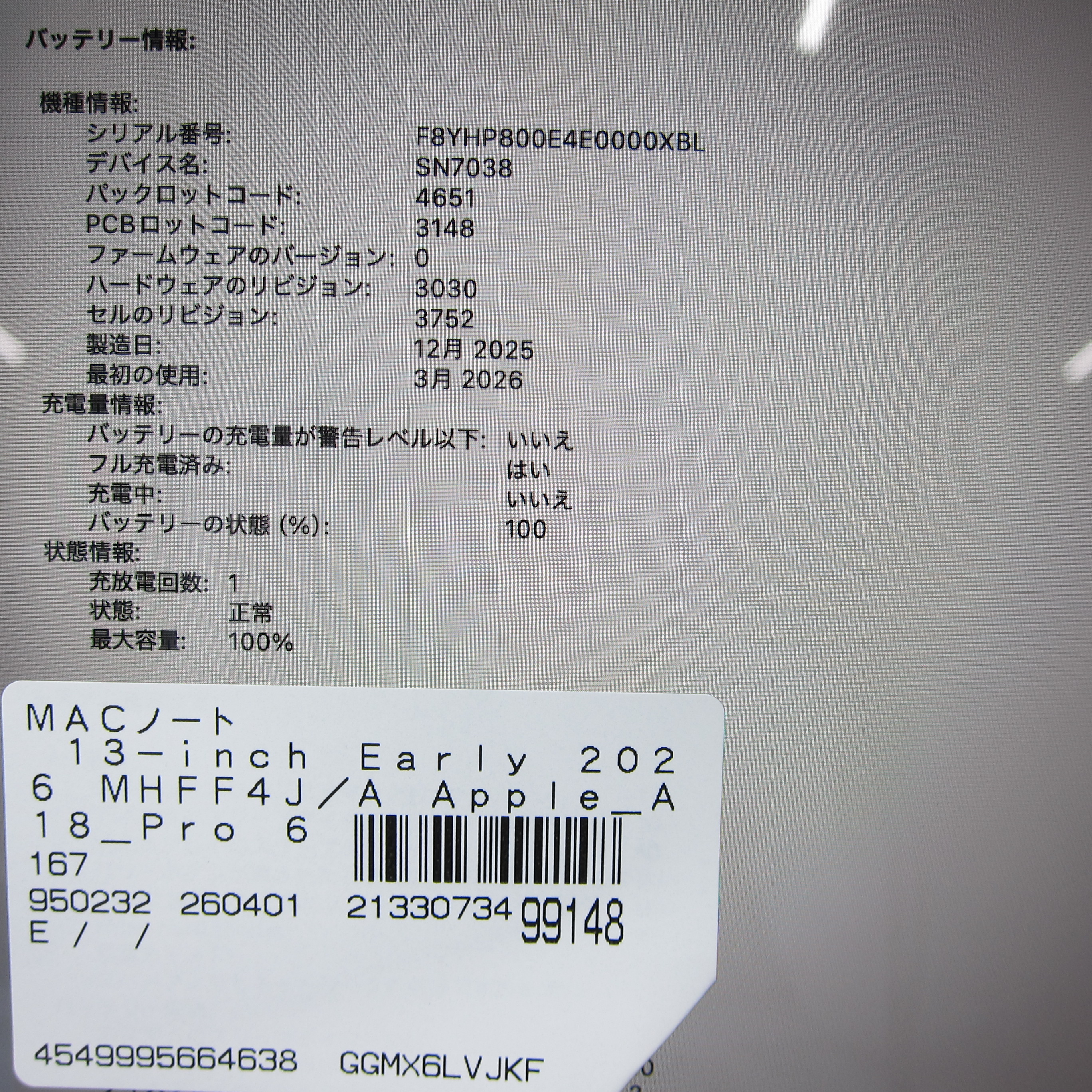 〔中古品〕 MacBook Neo 13-inch Early-2026 MHFF4J/A Apple A18 Pro 6コアCPU_5コアGPU 8GB SSD256GB インディゴ 〔26.3 Tahoe〕 [グラフィック:オンボード/JISキーボード]