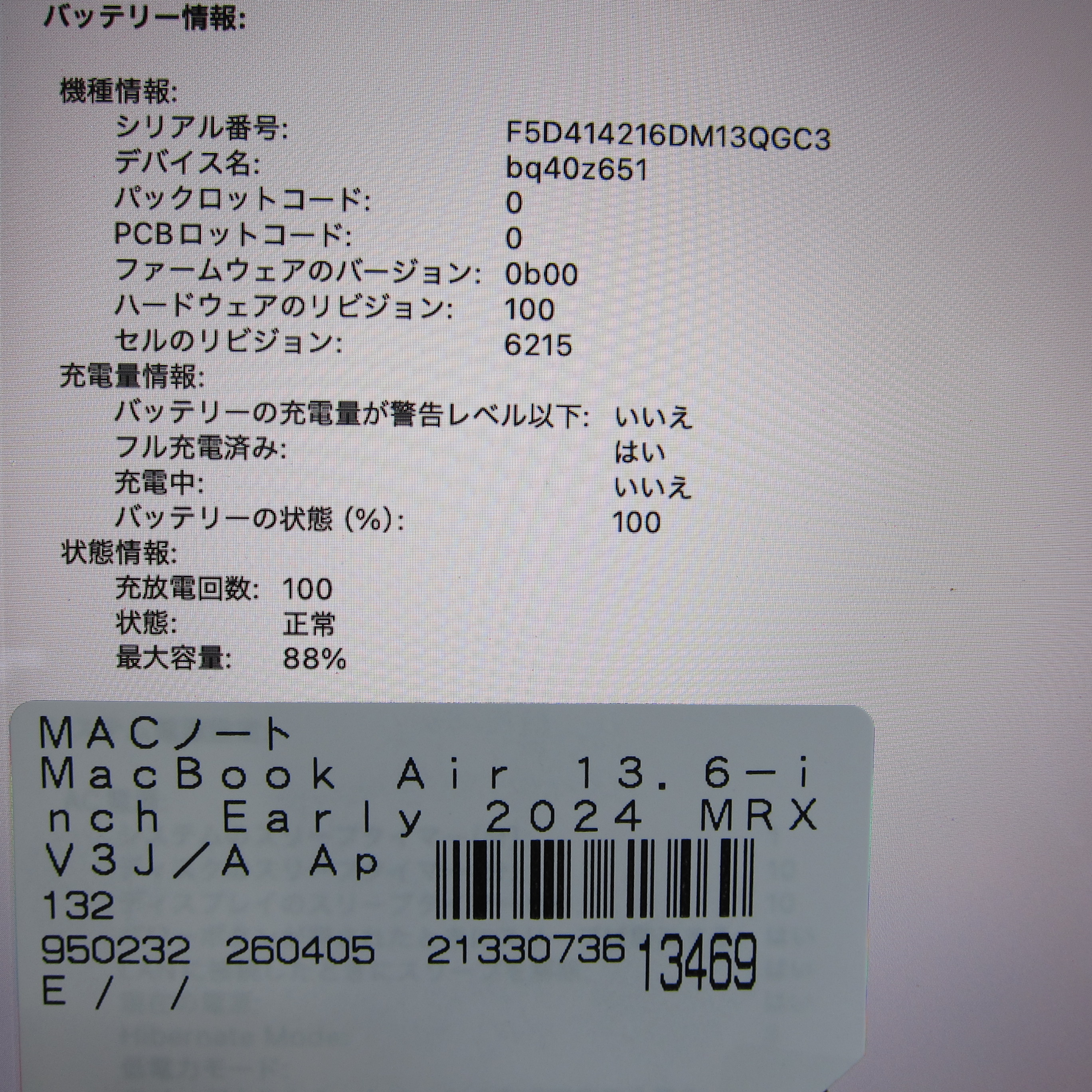 〔中古品〕 MacBook Air 13.6-inch Early-2024 MRXV3J/A Apple M3 8コアCPU_8コアGPU 8GB SSD256GB ミッドナイト 〔26.3 Tahoe〕 [グラフィック:オンボード/JISキーボード]