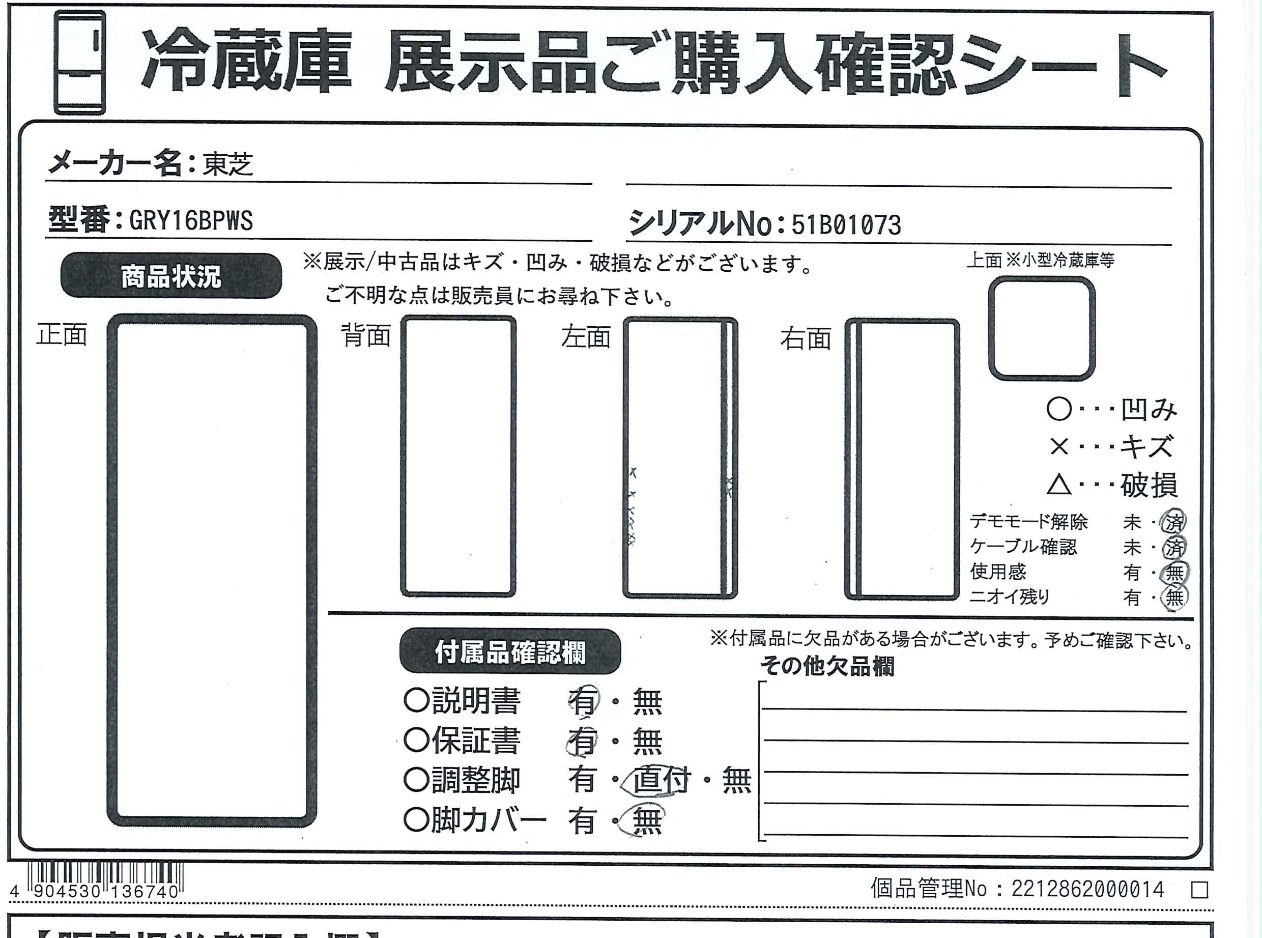 中古商品ランクについて 付属品・商品状態について 〔付属品〕説明書、調整脚×2、仕切れるチューブスタンド、製氷皿、蒸発皿