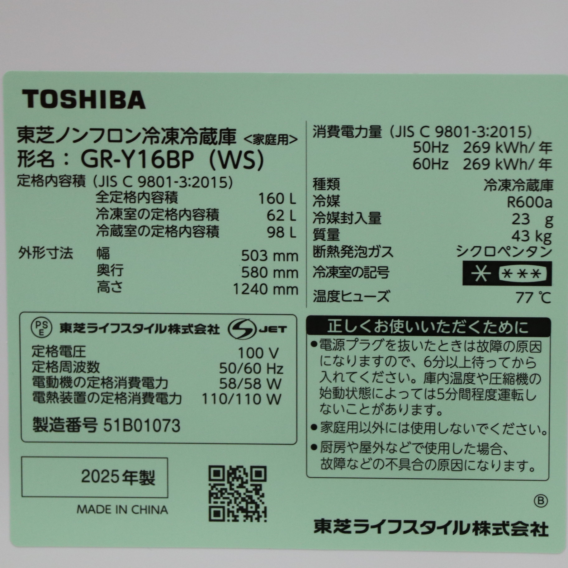 ▼同型番の新品商品はこちら![]() TOSHIBA(東芝) 冷蔵庫 BPシリーズ エクリュホワイト GR-Y16BP-WS [幅50.3cm /160L /2ドア /右開きタイプ /2025年] ¥47,520(税込) 0ポイントサービス 在庫あり |