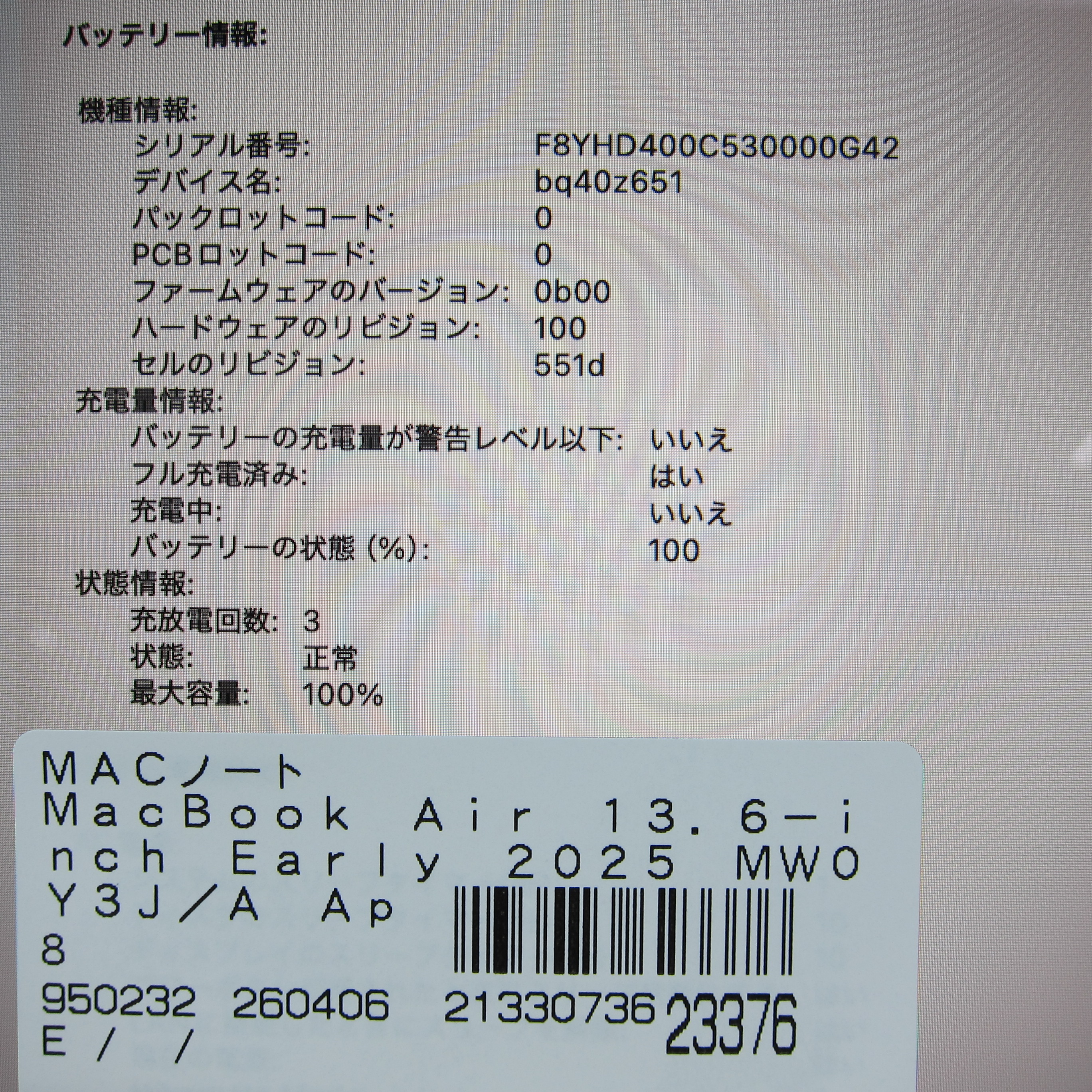 〔中古品〕 MacBook Air 13.6-inch Early-2025 MW0Y3J/A Apple M4 10コアCPU_8コアGPU 16GB SSD256GB スターライト 〔26.3 Tahoe〕 [グラフィック:オンボード/JISキーボード]