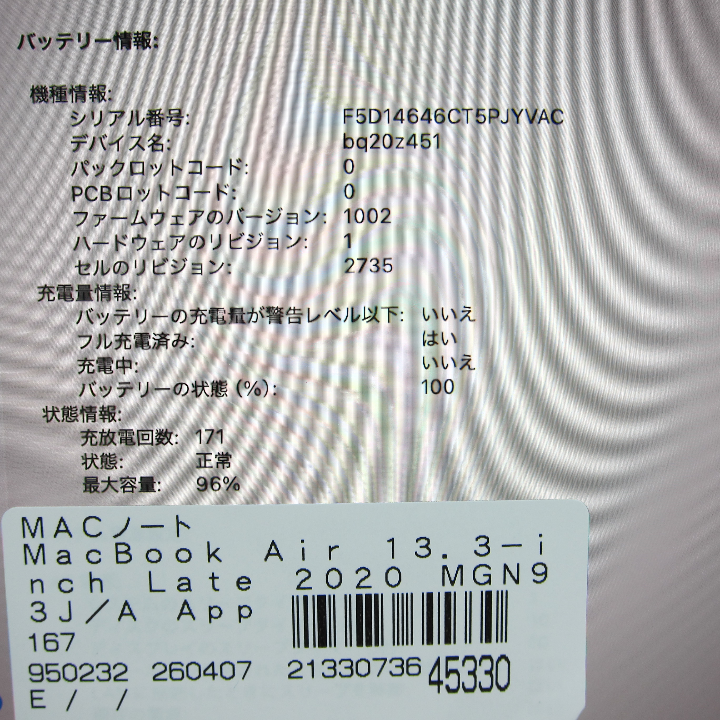 〔中古品〕 MacBook Air 13.3-inch Late-2020 MGN93J/A Apple M1 8コアCPU_7コアGPU 8GB SSD256GB シルバー 〔26.3 Tahoe〕 [グラフィック:オンボード/JISキーボード]