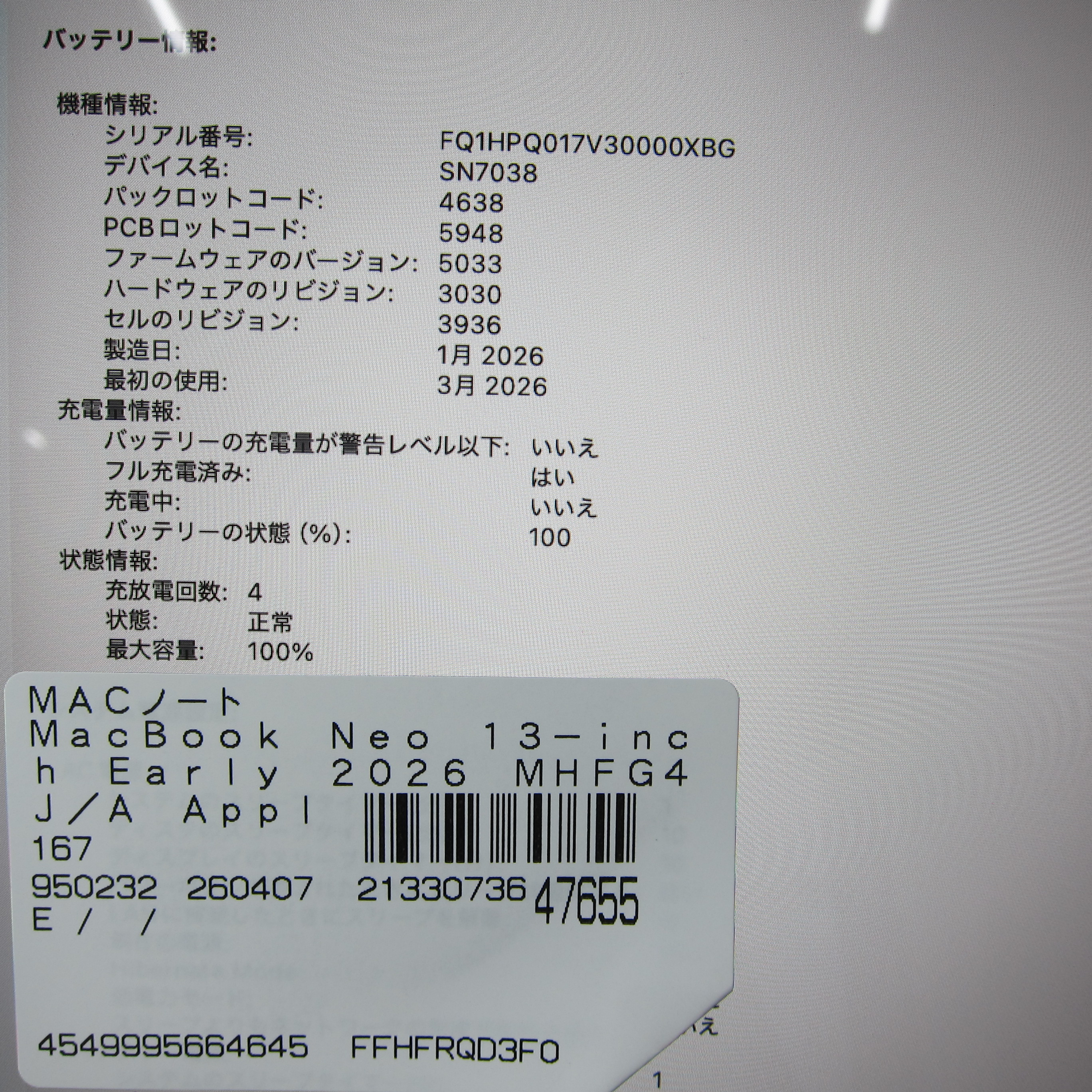 〔中古品〕 MacBook Neo 13-inch Early-2026 MHFG4J/A Apple A18 Pro 6コアCPU_5コアGPU 8GB SSD512GB インディゴ 〔26.3 Tahoe〕 [グラフィック:オンボード/JISキーボード]