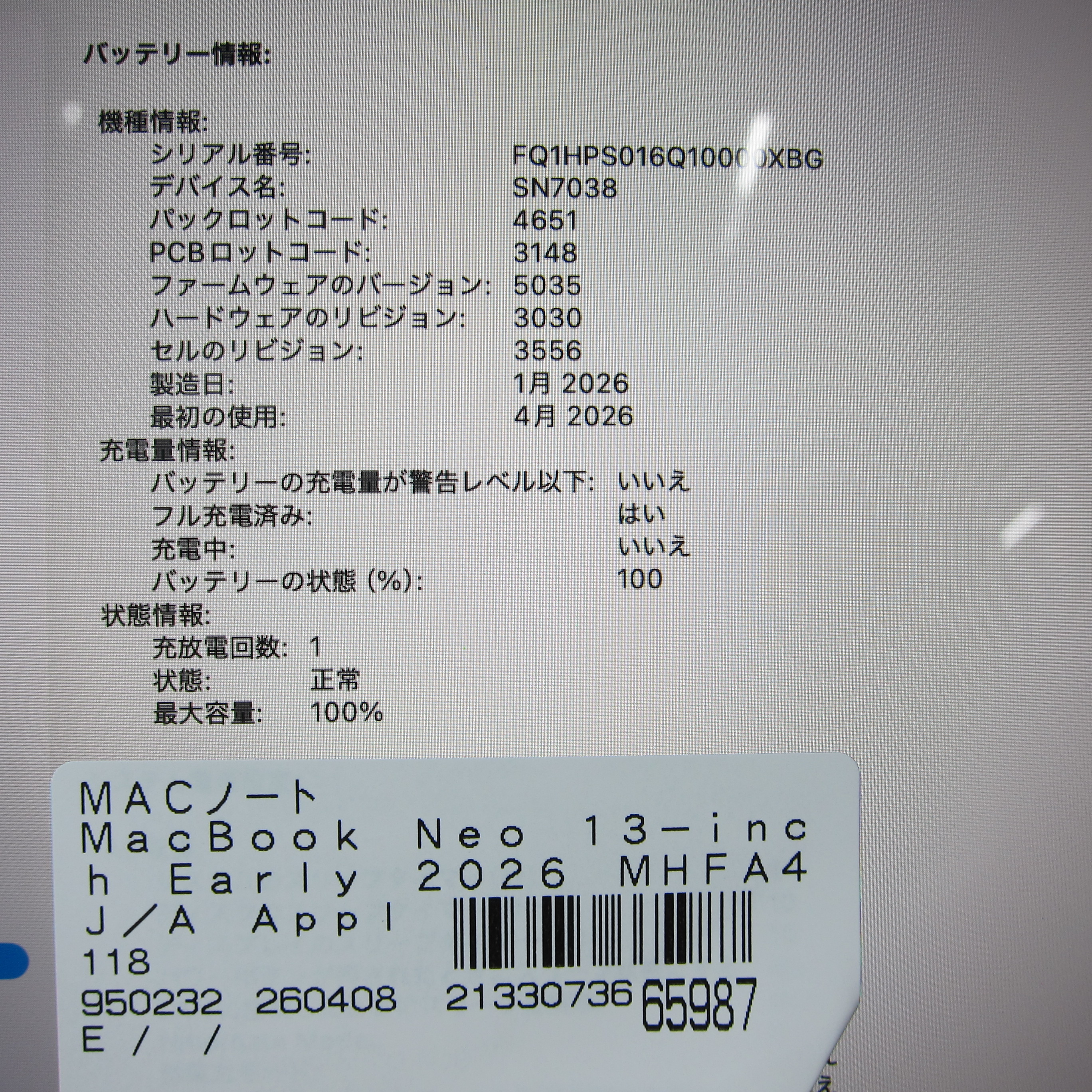 〔中古品〕 MacBook Neo 13-inch Early-2026 MHFA4J/A Apple A18 Pro 6コアCPU_5コアGPU 8GB SSD256GB シルバー 〔26.3 Tahoe〕 [グラフィック:オンボード/JISキーボード]