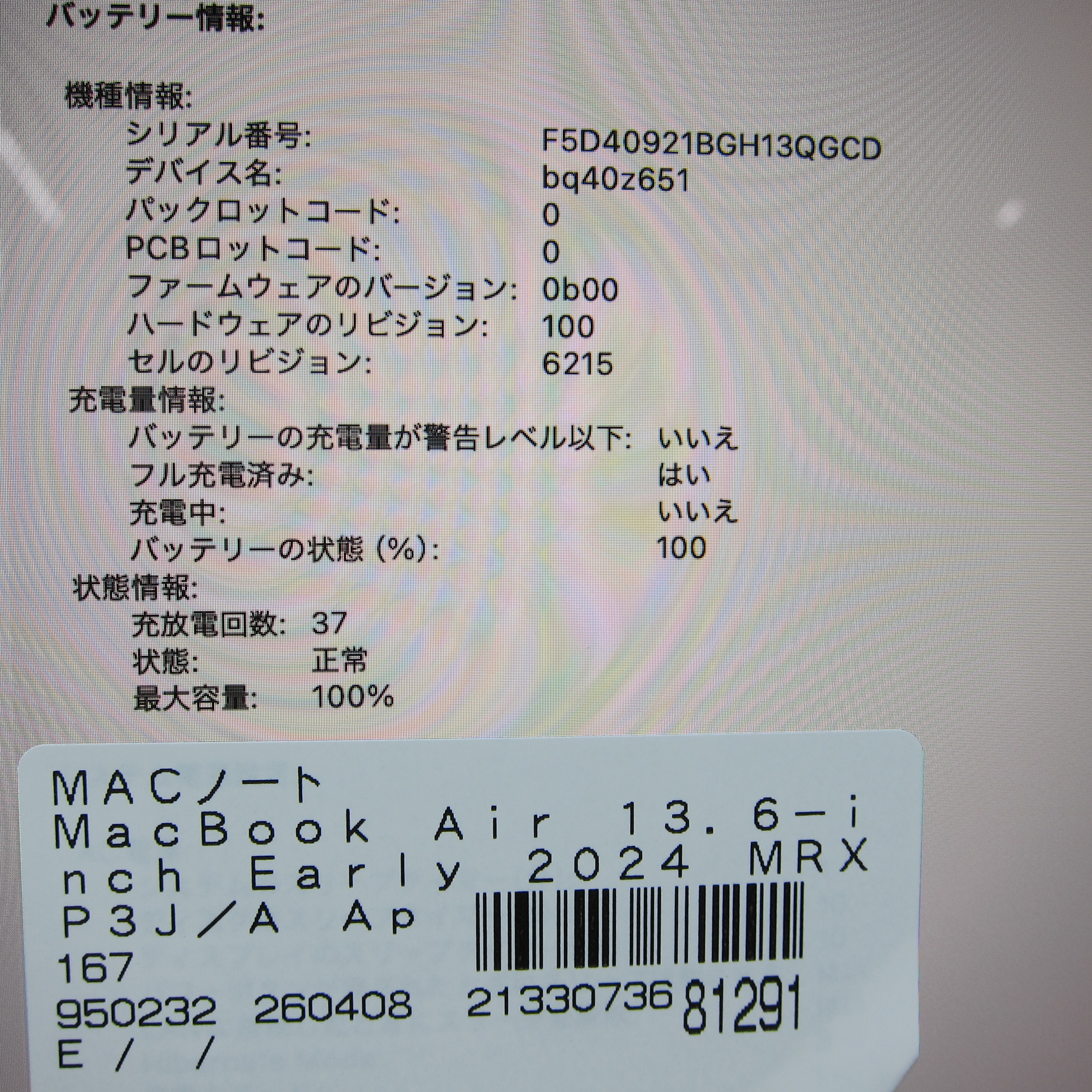 〔中古品〕 MacBook Air 13.6-inch Early-2024 MRXP3J/A Apple M3 8コアCPU_10コアGPU 8GB SSD512GB スペースグレイ 〔26.3 Tahoe〕 [グラフィック:オンボード/USキーボード]