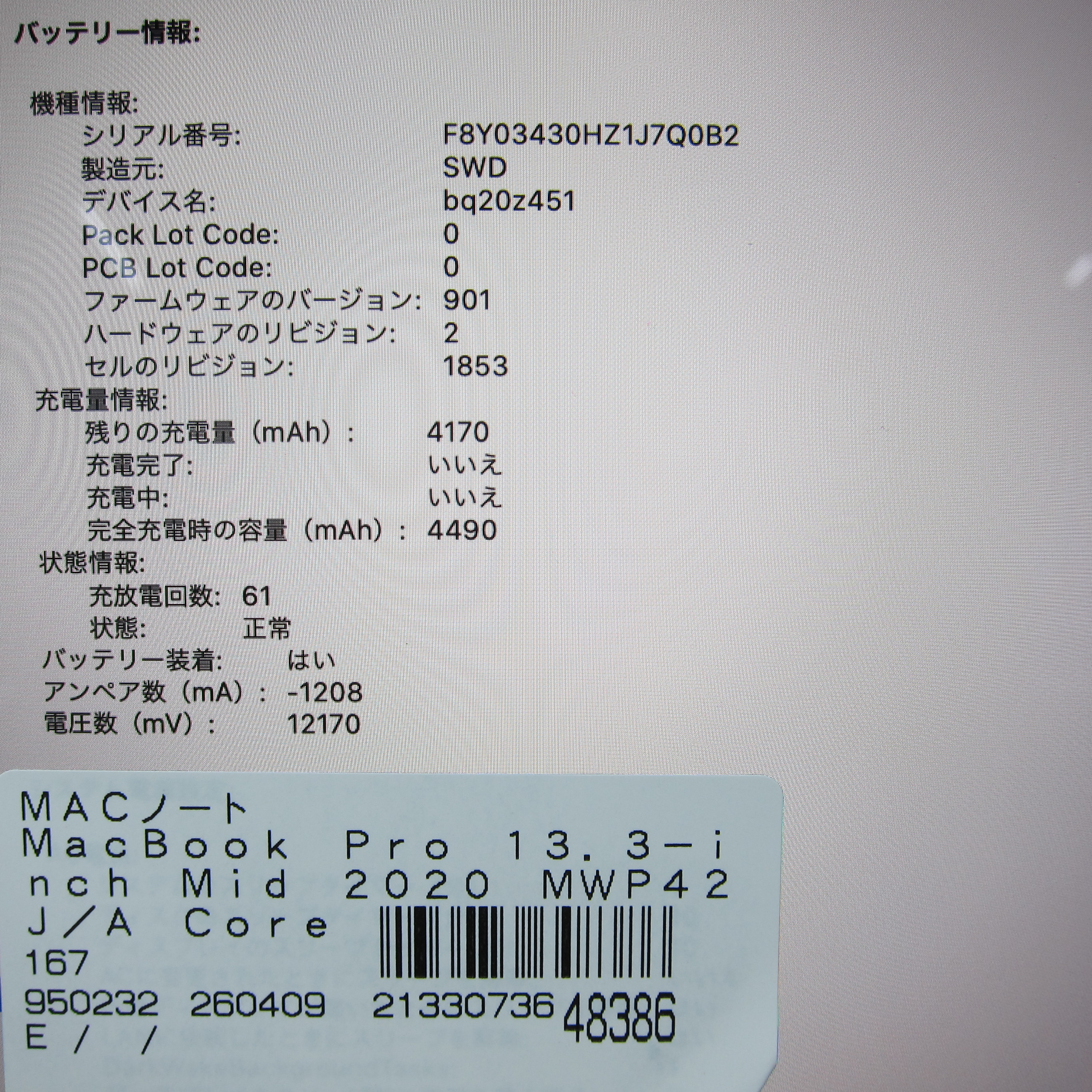 〔中古品〕 MacBook Pro 13.3-inch Mid-2020 MWP42J/A Core_i5 2.0GHz 32GB SSD512GB スペースグレイ 〔10.15 Catalina〕 [グラフィック:Intel Iris Plus Graphics/JISキーボード]