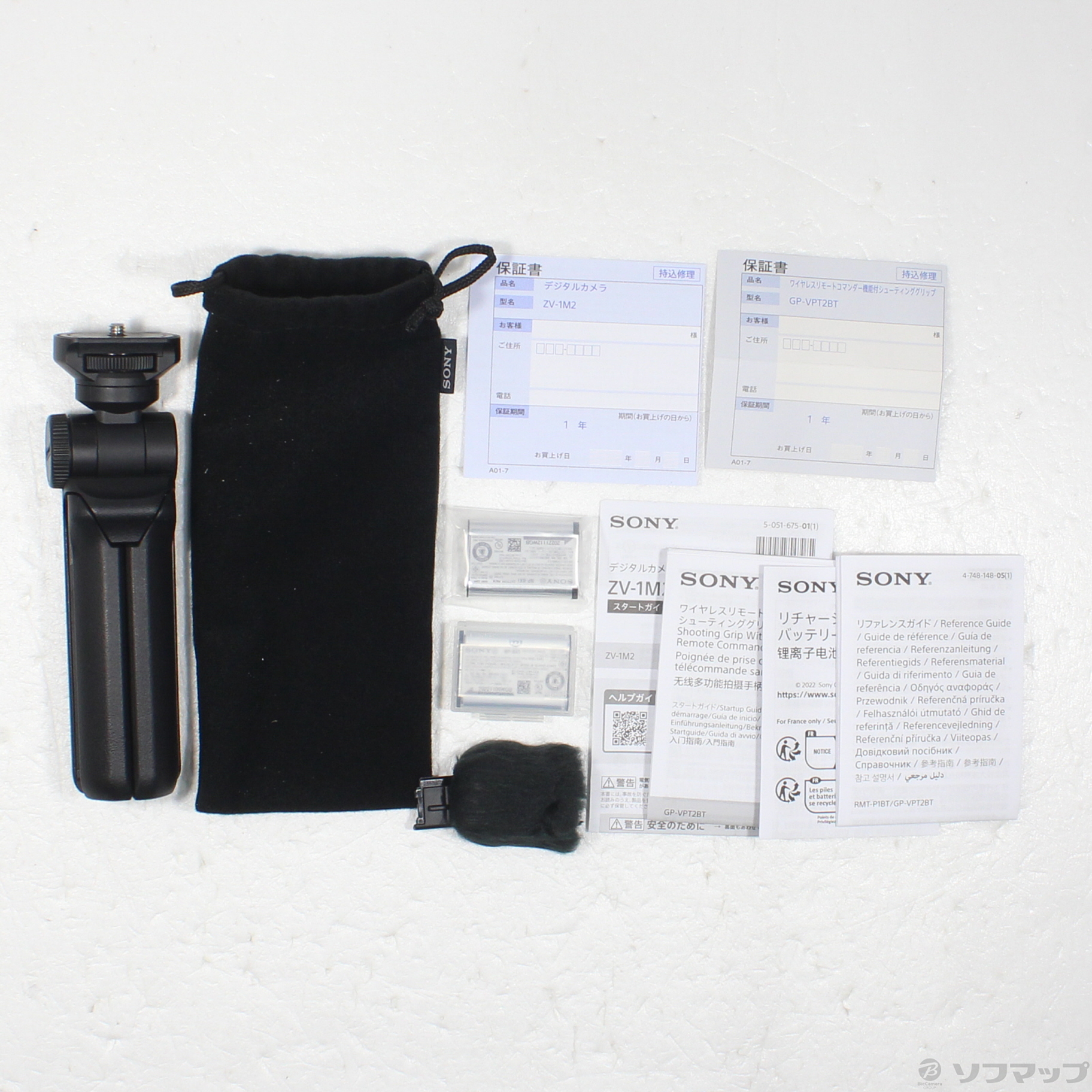 ワイヤレスリモートコマンダー機能付シューティンググリップ、バッテリーパック(計2個 ※本体同梱分1個を含む)がセット。