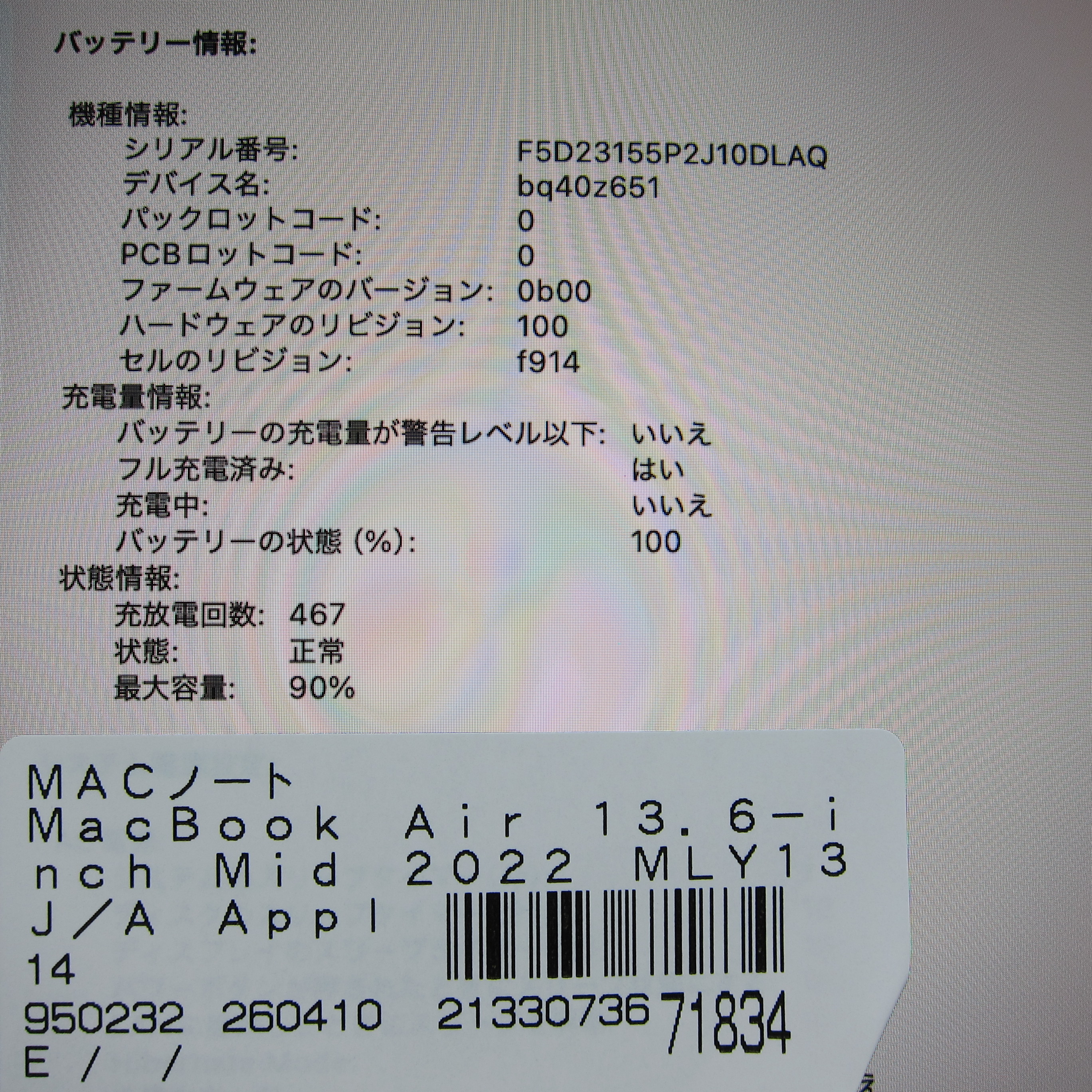 〔中古品〕 MacBook Air 13.6-inch Mid-2022 MLY13J/A Apple M2 8コアCPU_8コアGPU 24GB SSD512GB スターライト 〔26.3 Tahoe〕 [グラフィック:オンボード/JISキーボード]
