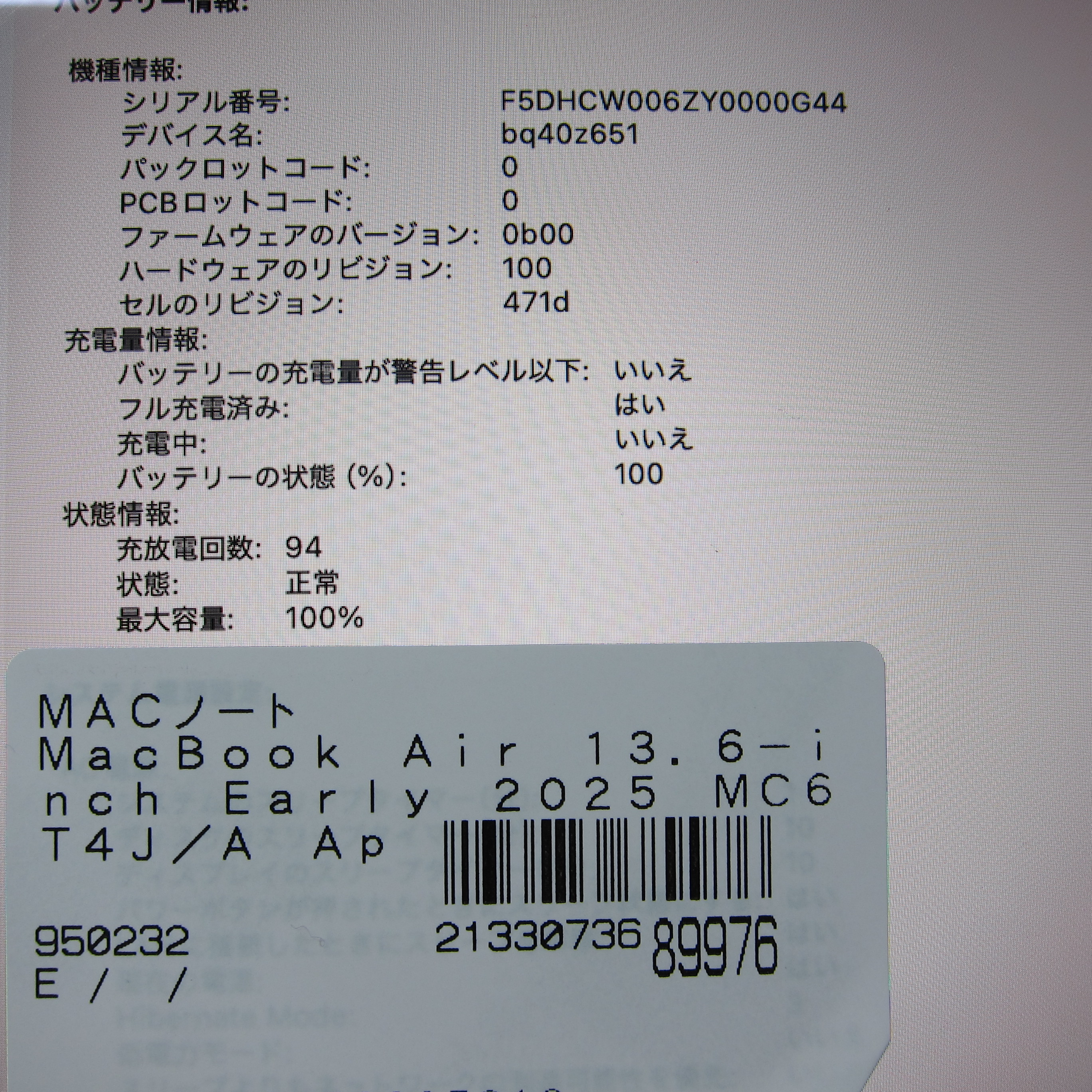 〔展示品〕 MacBook Air 13.6-inch Early-2025 MC6T4J/A Apple M4 10コアCPU_8コアGPU 16GB SSD256GB スカイブルー 〔26.3 Tahoe〕 [グラフィック:オンボード/JISキーボード]