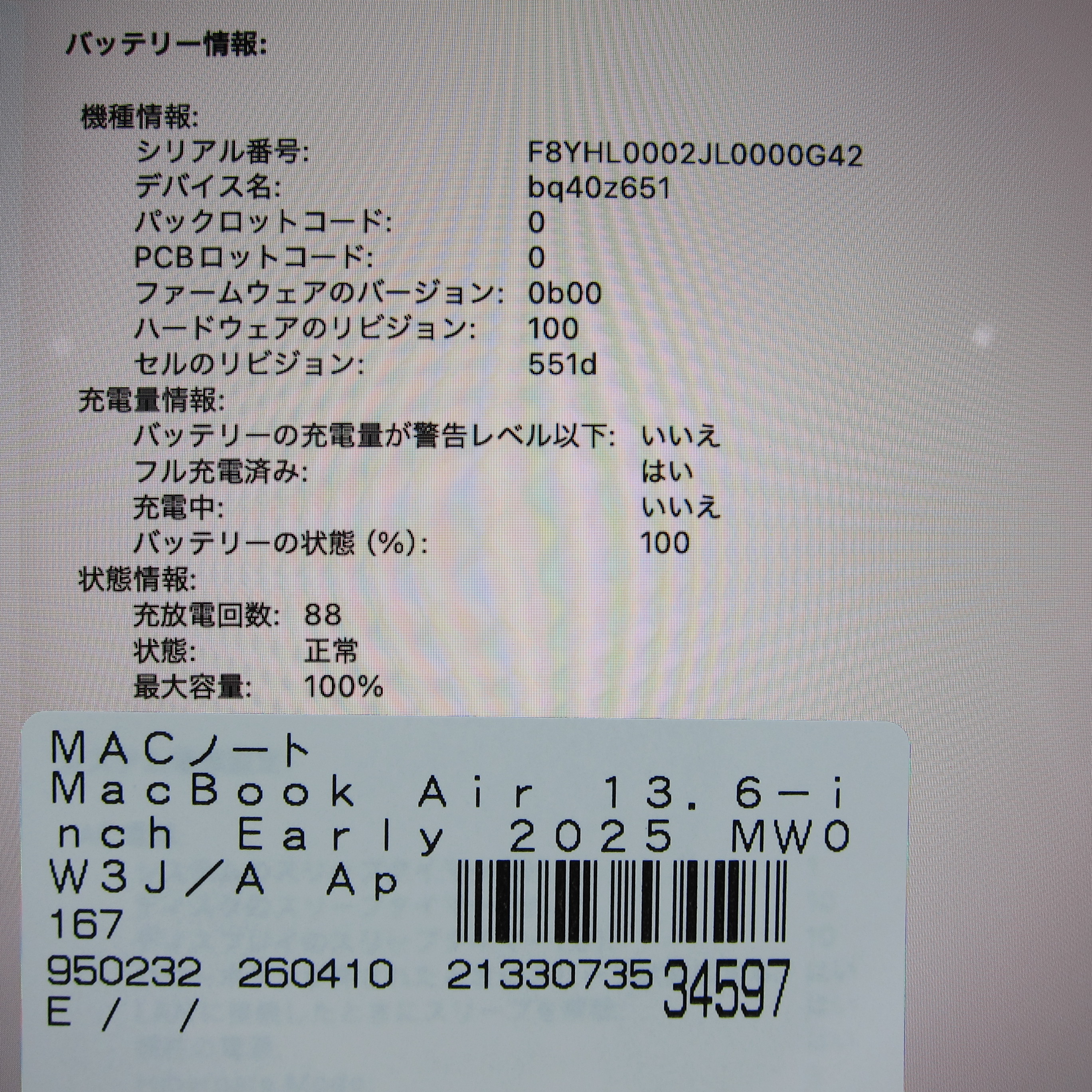 〔中古品〕 MacBook Air 13.6-inch Early-2025 MW0W3J/A Apple M4 10コアCPU_8コアGPU 16GB SSD256GB シルバー 〔26.3 Tahoe〕 [グラフィック:オンボード/USキーボード]