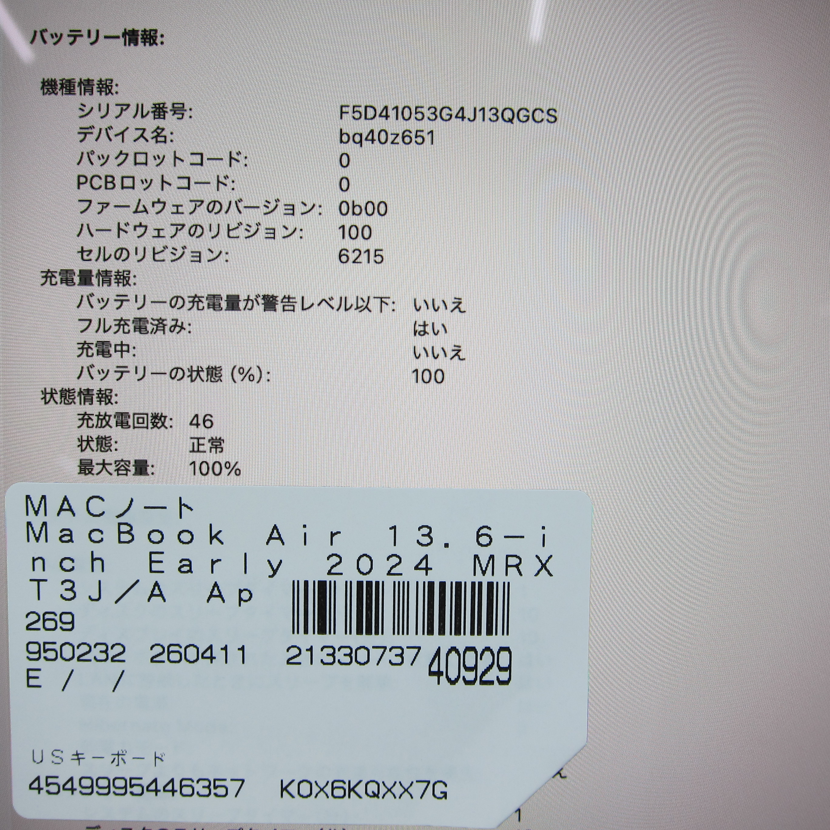 〔中古品〕 MacBook Air 13.6-inch Early-2024 MRXT3J/A Apple M3 8コアCPU_8コアGPU 8GB SSD256GB スターライト 〔26.3 Tahoe〕 [グラフィック:オンボード/USキーボード]