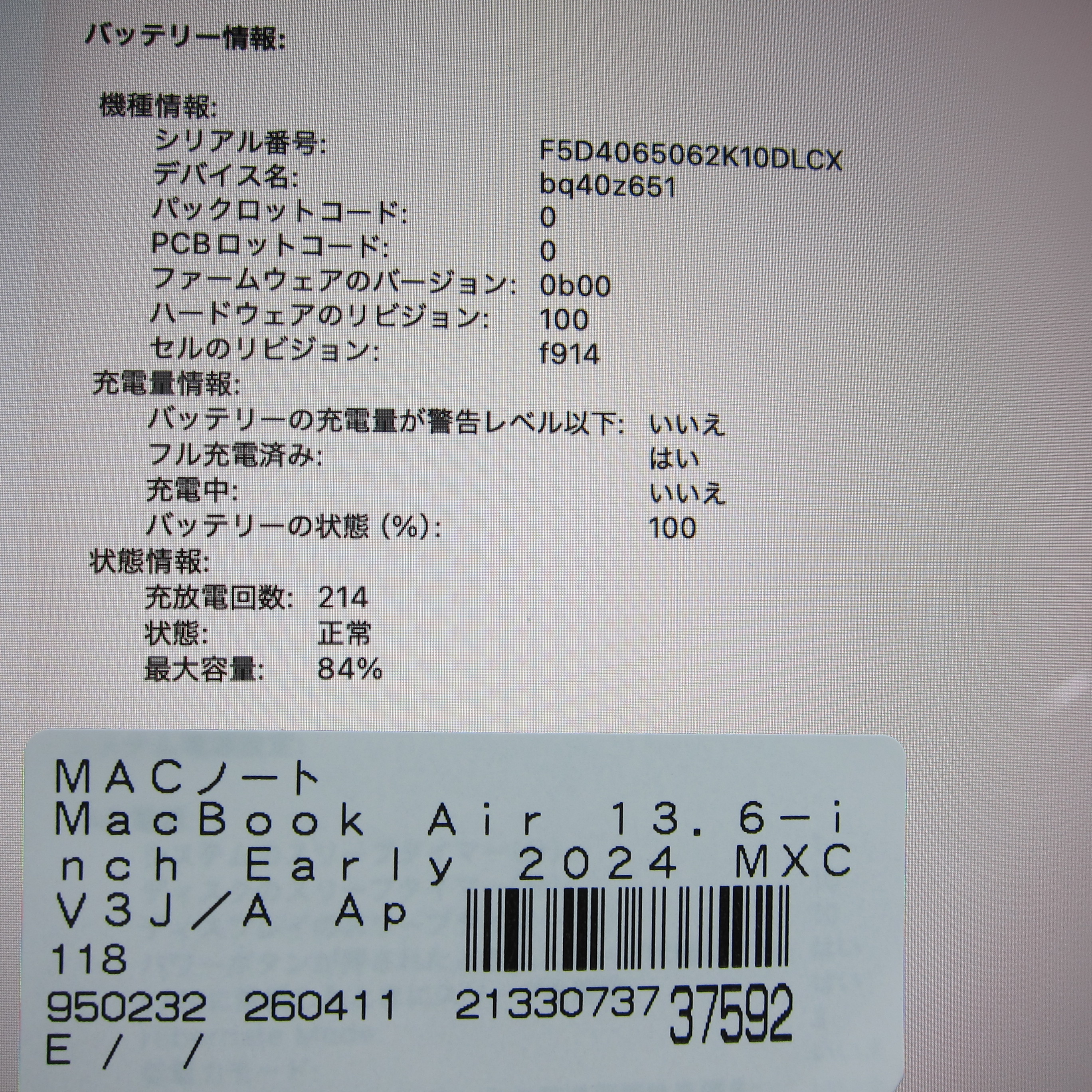 中古商品ランクについて 付属品・商品状態について 〔付属品〕ACアダプター(本体用)、USB-C - MagSafe 3ケーブル、外箱