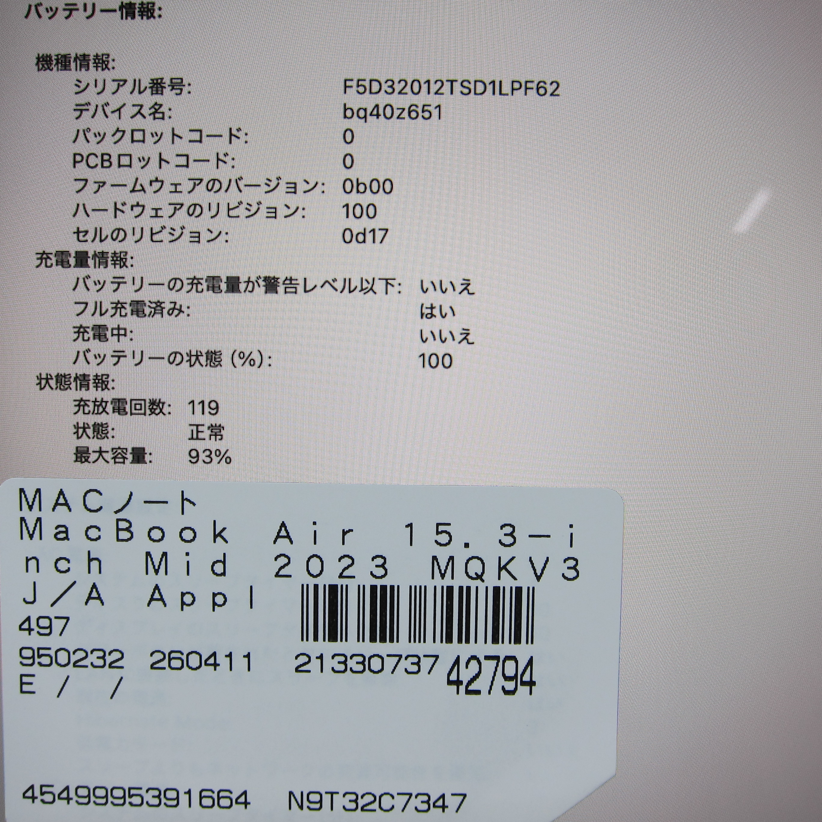 〔中古品〕 MacBook Air 15.3-inch Mid-2023 MQKV3J/A Apple M2 8コアCPU_10コアGPU 16GB SSD512GB スターライト 〔26.3 Tahoe〕 [グラフィック:オンボード/JISキーボード]