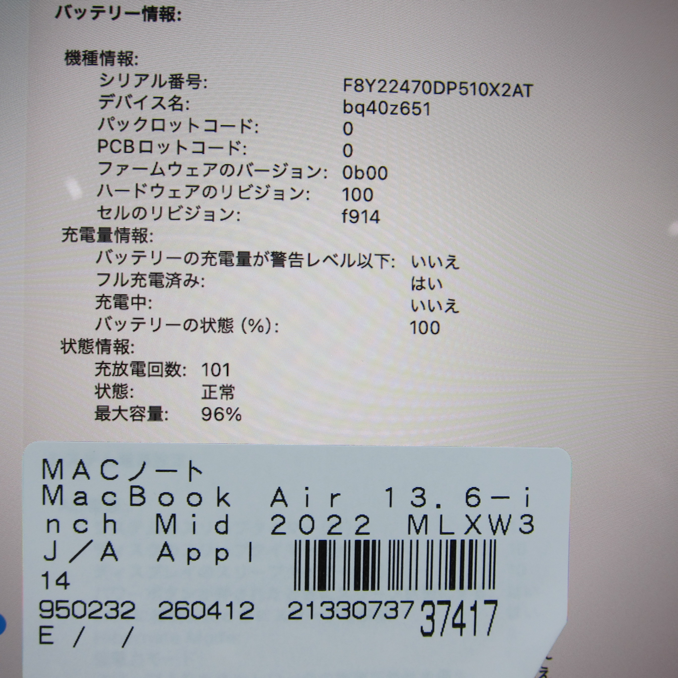 中古商品ランクについて 付属品・商品状態について 〔付属品〕ACアダプター(本体用)、USB-C - MagSafe 3ケーブル、外箱