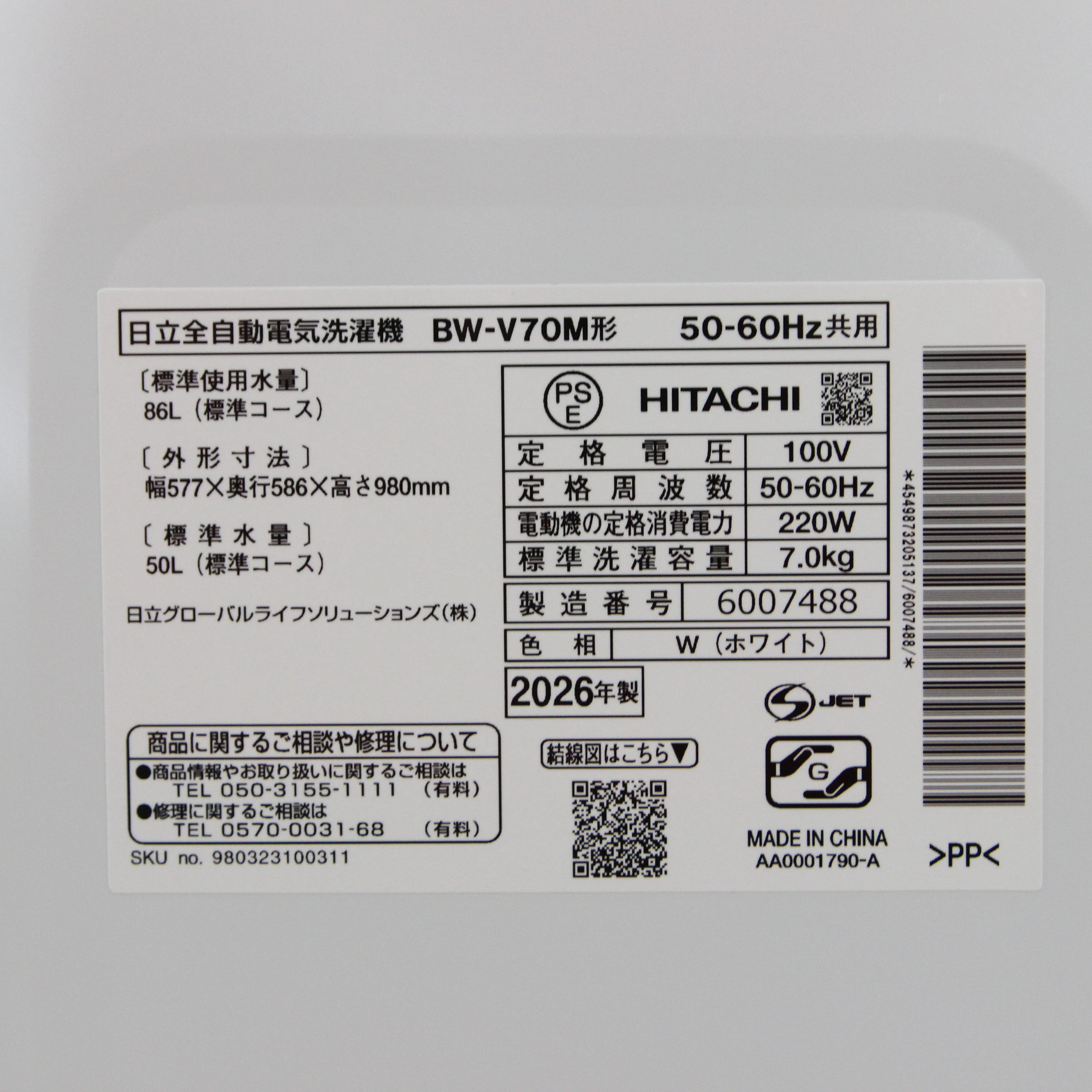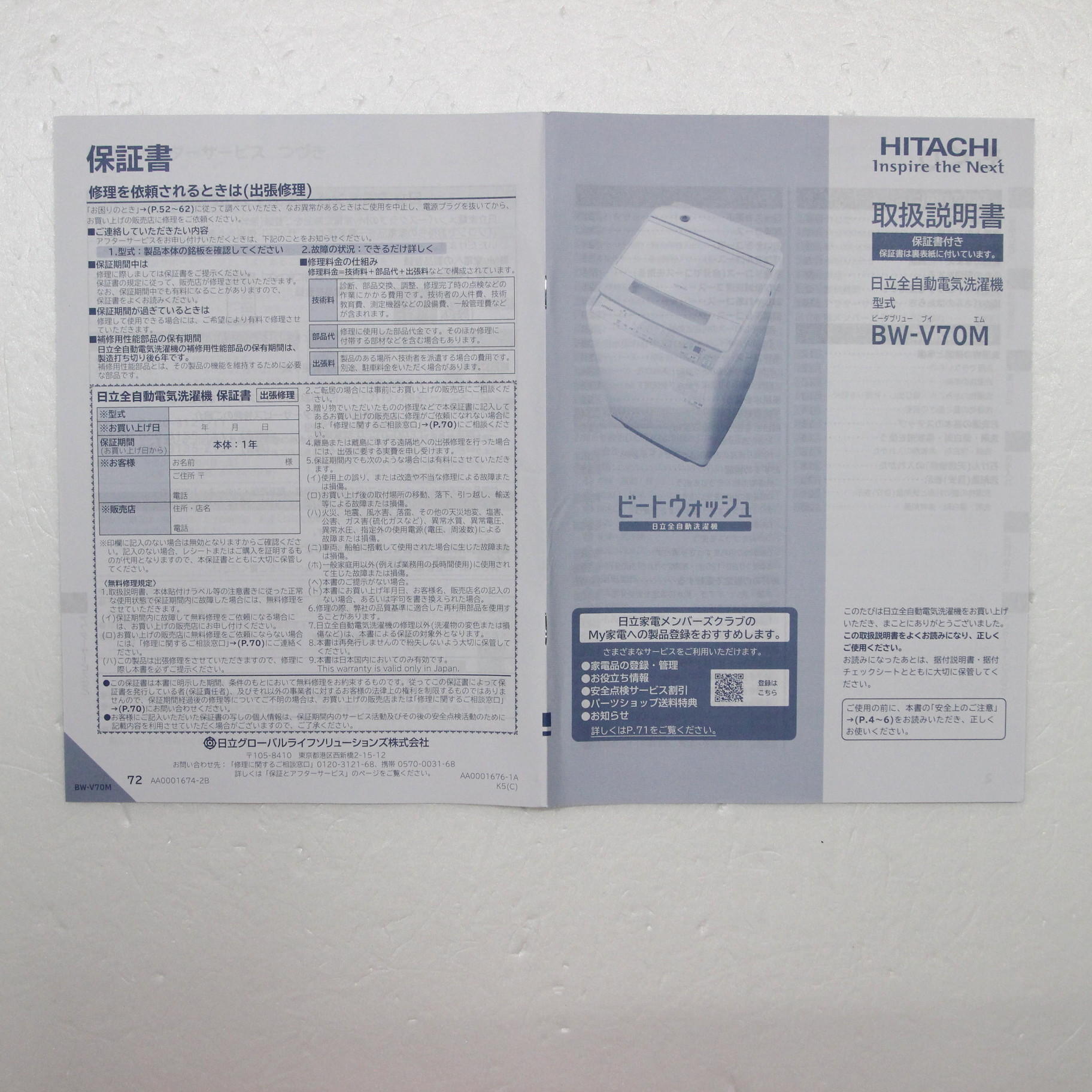 〔展示品〕 全自動洗濯機 ビートウォッシュ ホワイト BW-V70M-W [洗濯7.0kg /乾燥機能無 /上開き]